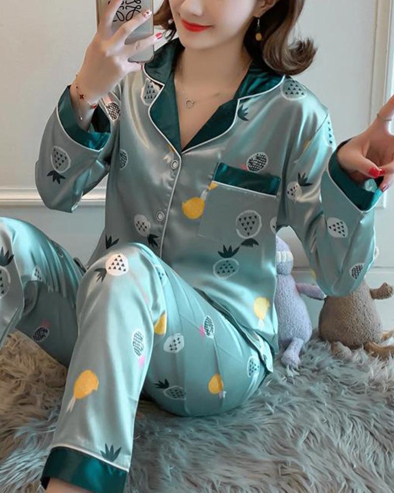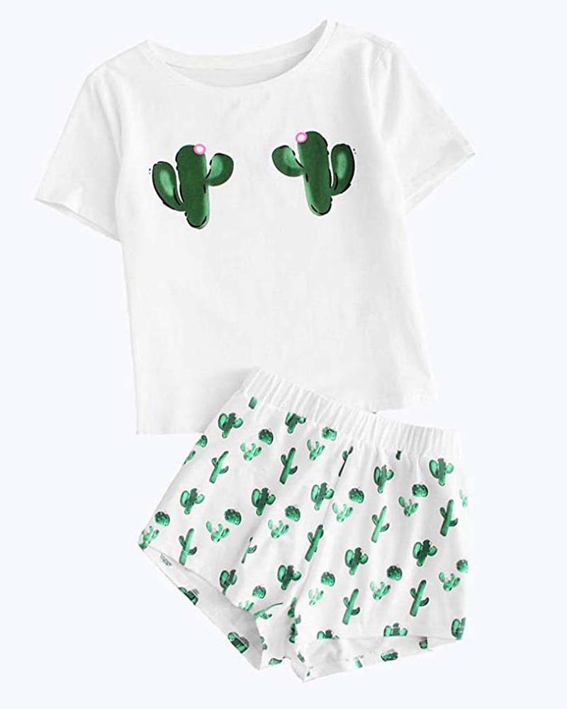 Print Short Sleeve Pajamas Set |