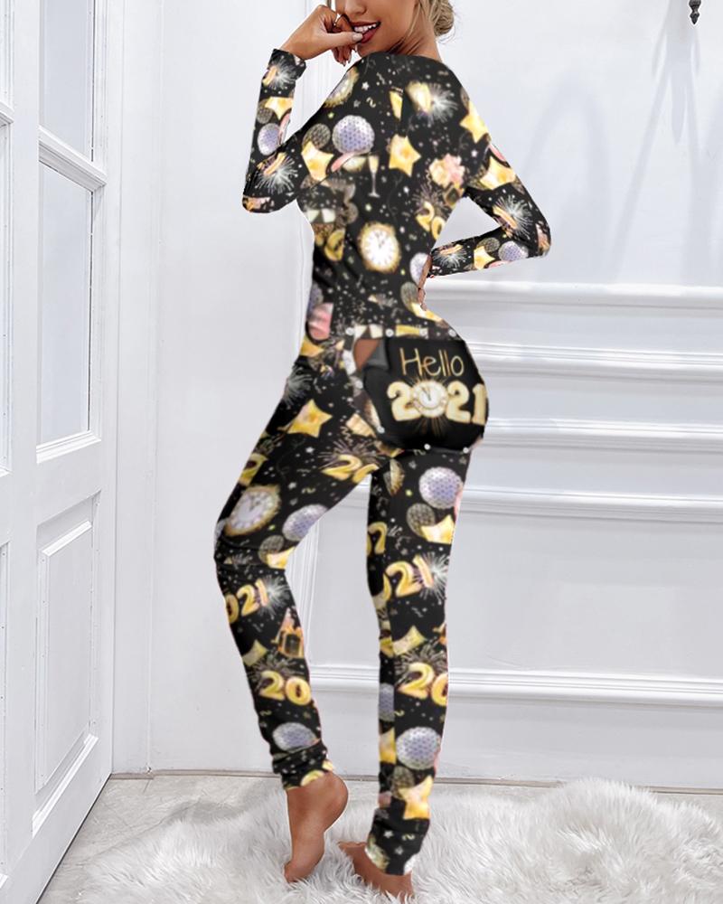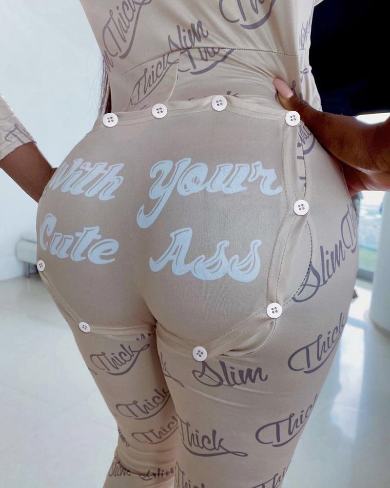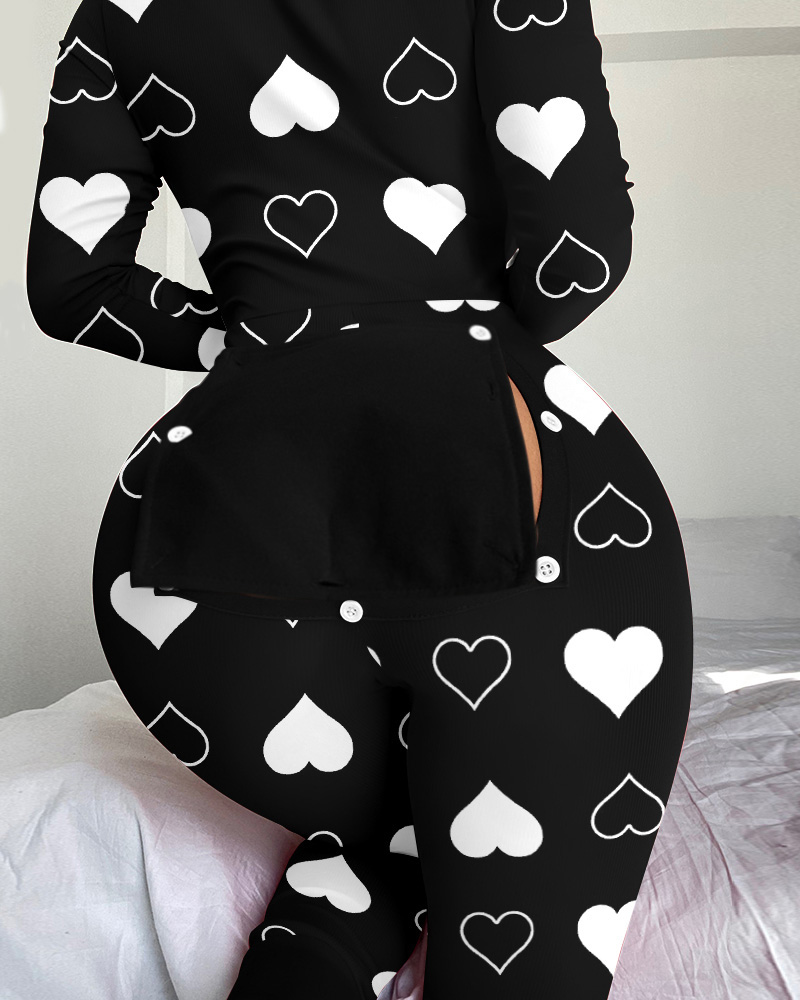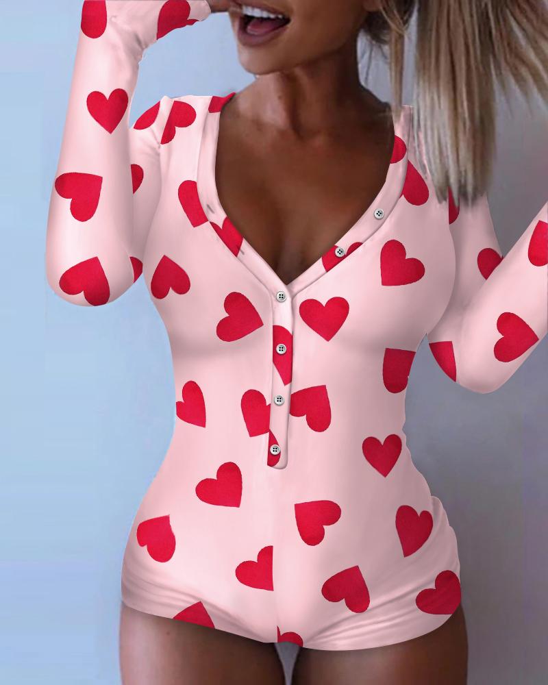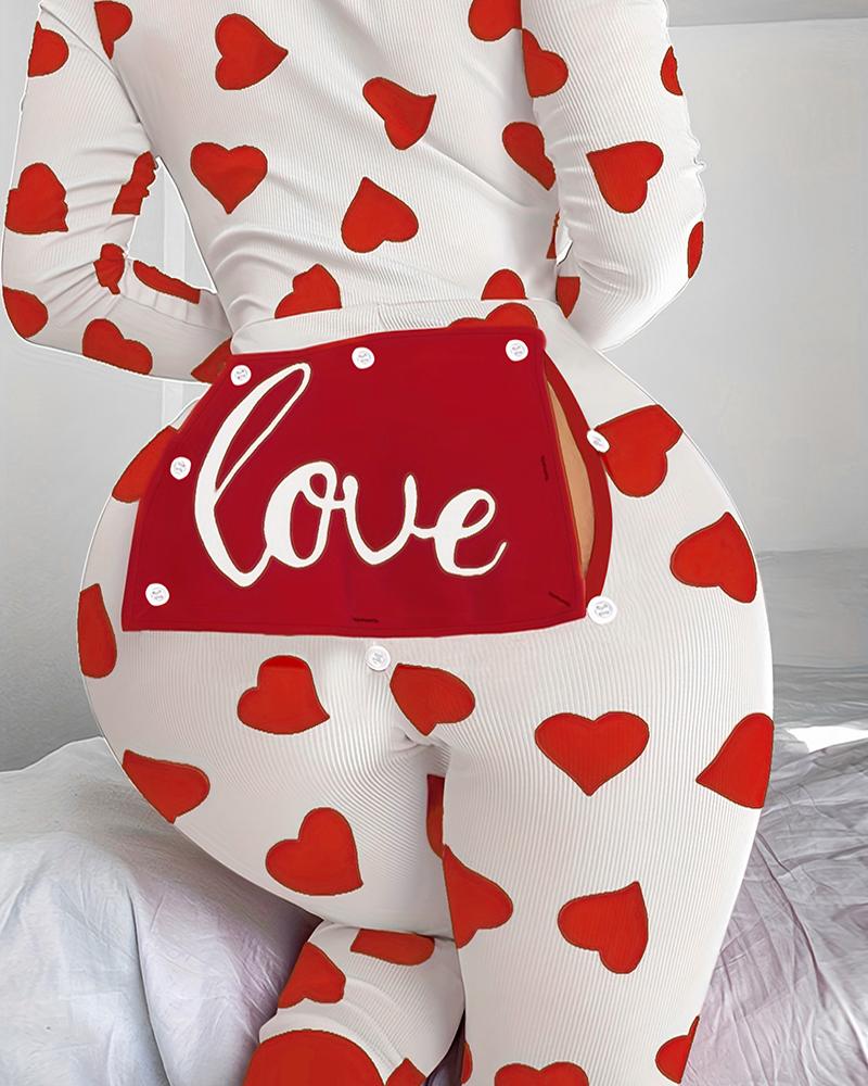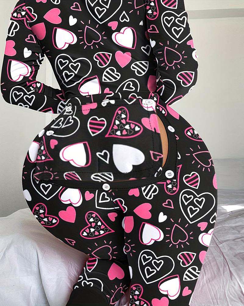 Letter Heart Print Functional Buttoned Flap Adult Onesie |