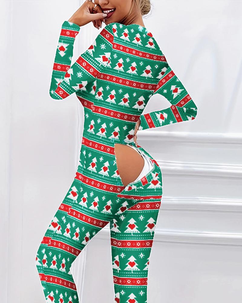 Christmas Plunge Button Long Sleeve Romper |