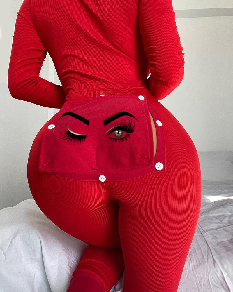 Eyes Print Functional Buttoned Flap Adult Onesie |