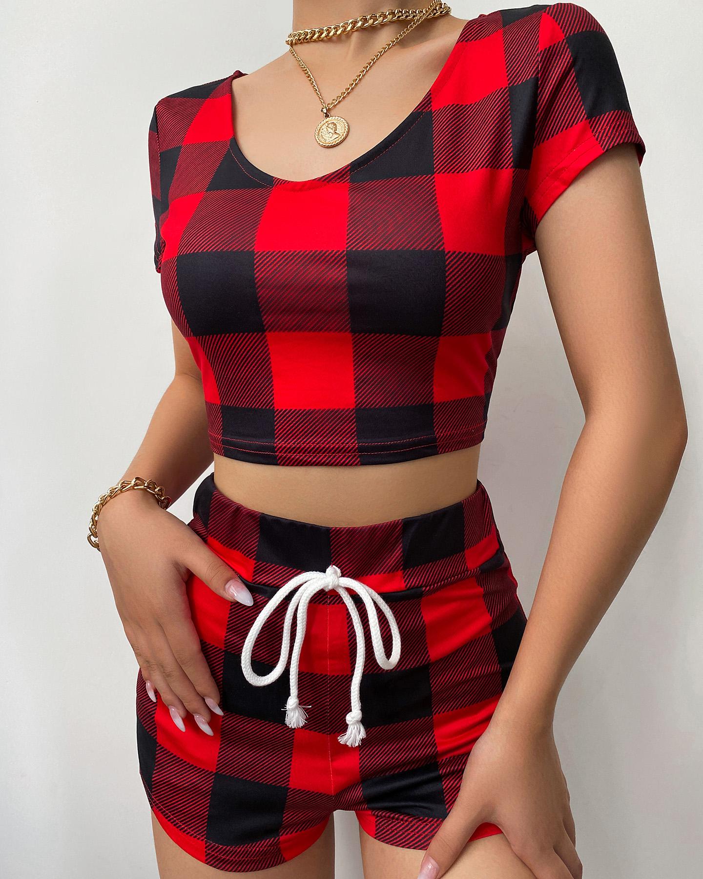 Christmas Plaid Print Casual Pajamas Set |