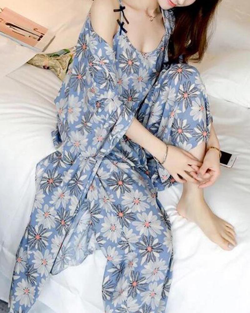 Tropical Print 3-Piece Pajama Set |