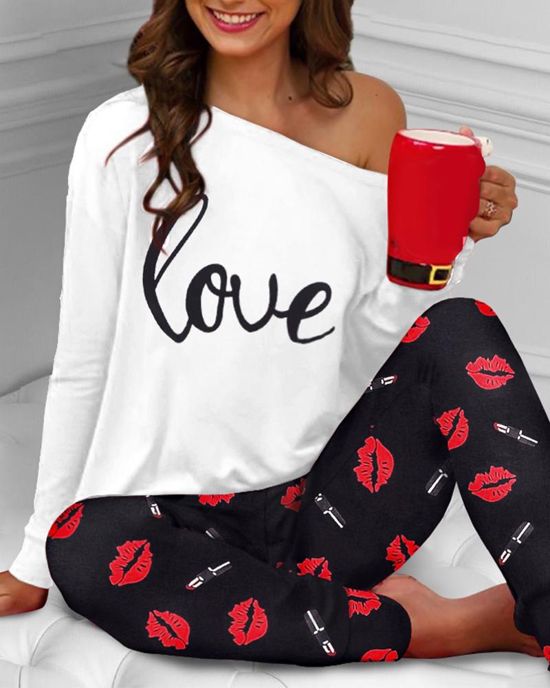 Valentine's Day Lip Letter Print Long Sleeve Pajamas Set |