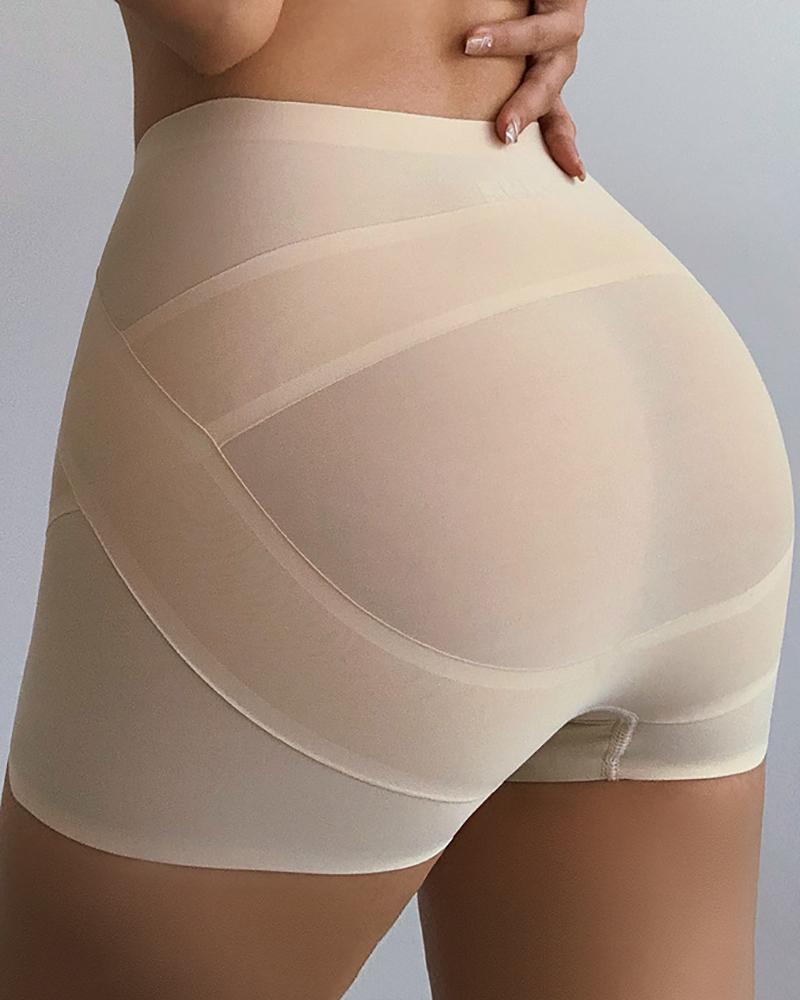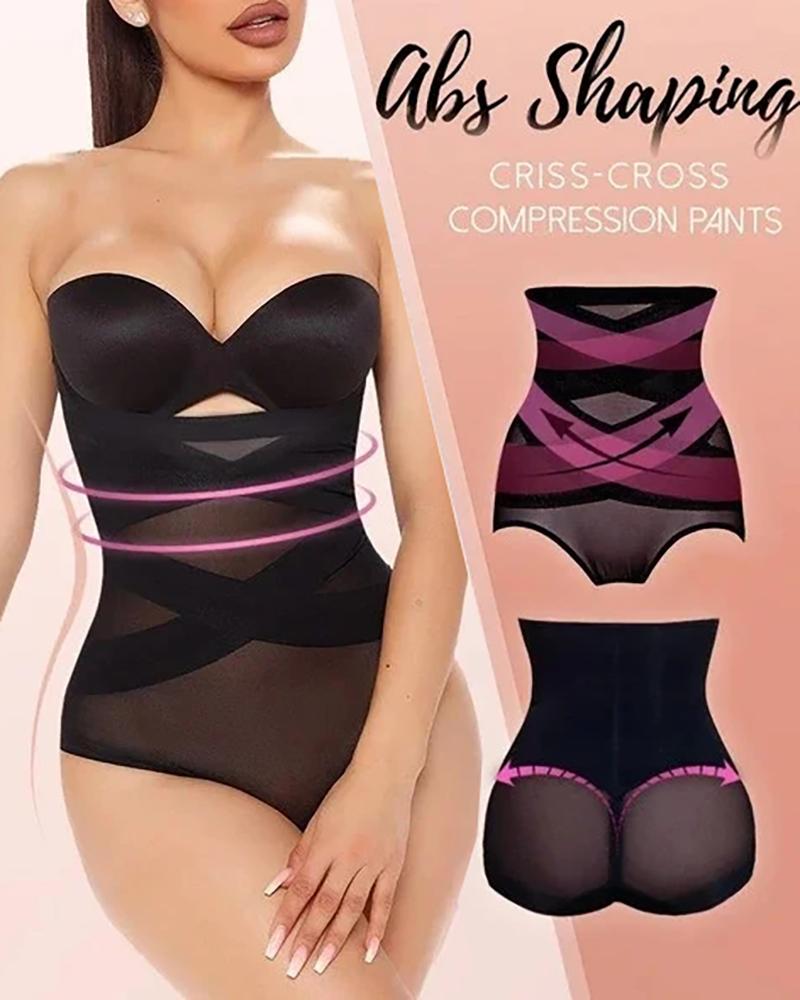 Sheer Mesh Butt Lifting Tummy Control Cross Compression Abs Shaping Pants |