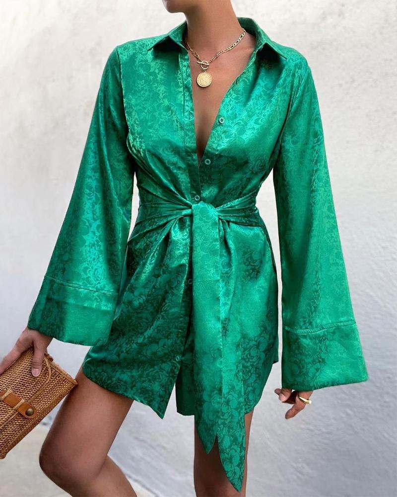 Long Sleeve Jacquard Button Down Shirt Dress |