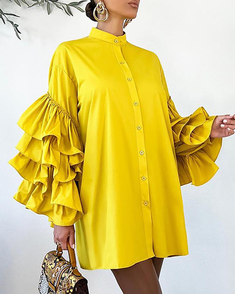 Leopard Print Flounce Sleeve Button Front Shirt Dress |
