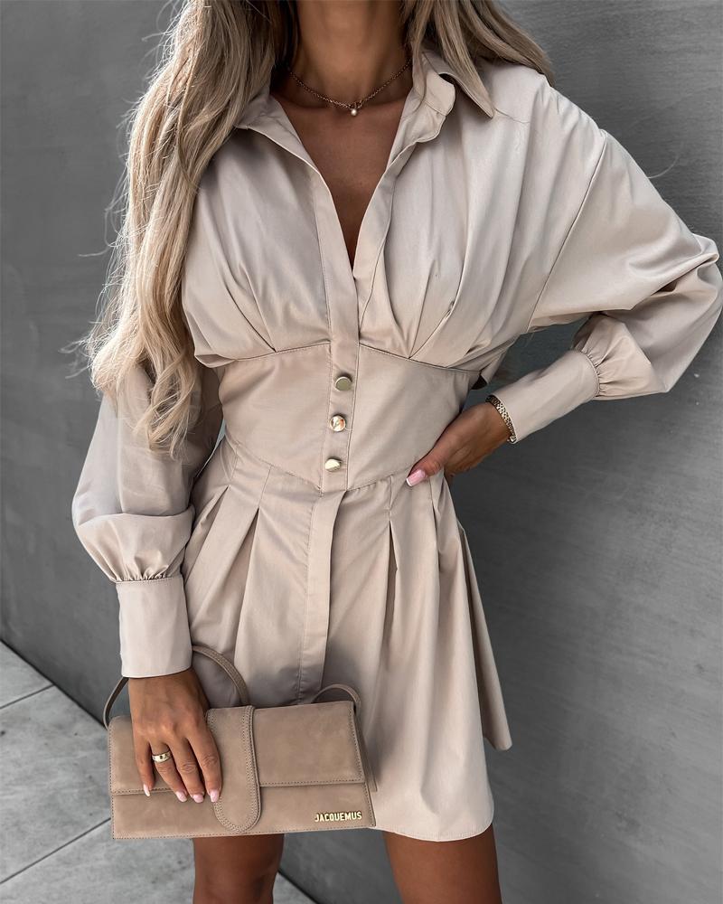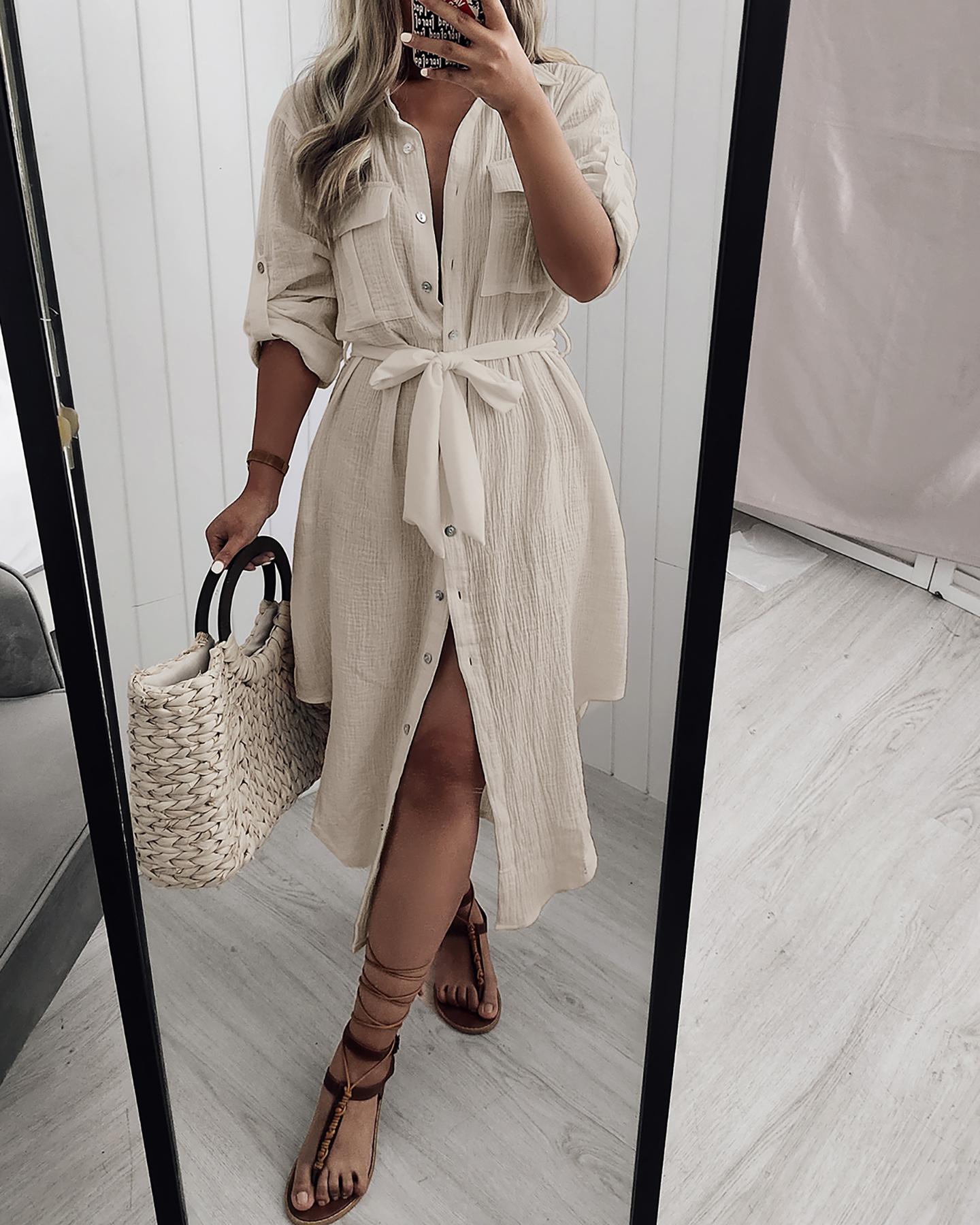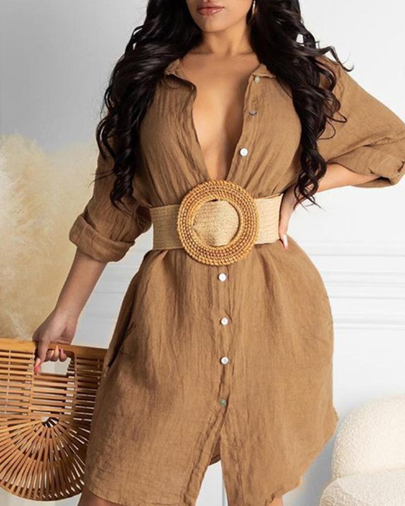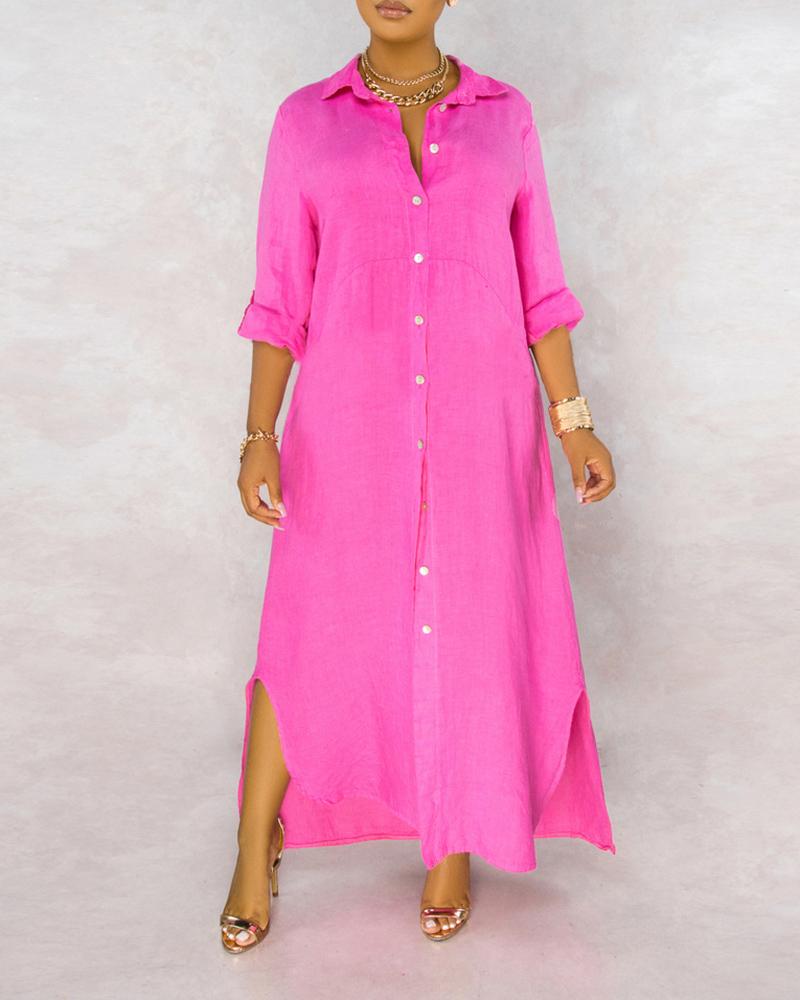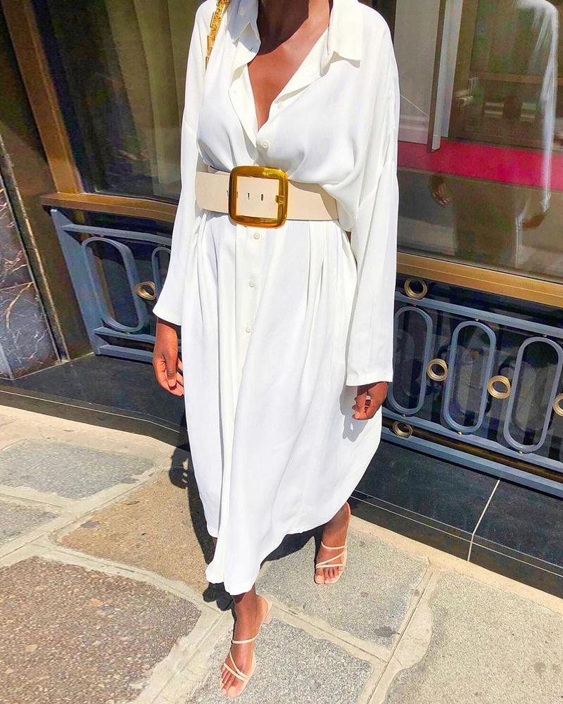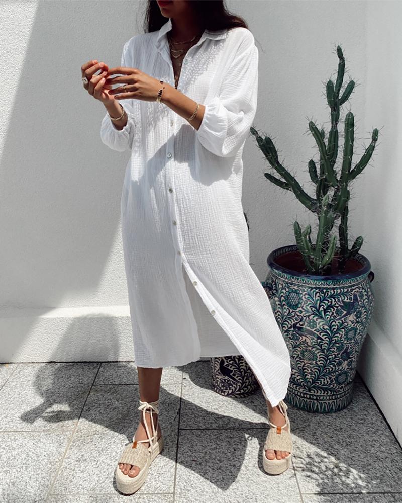 Plus Size Long Sleeve Button Front Shirt Dress |