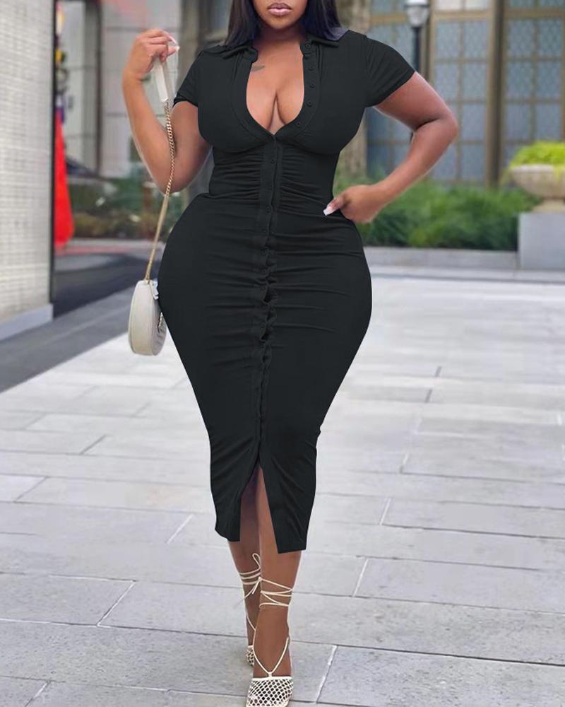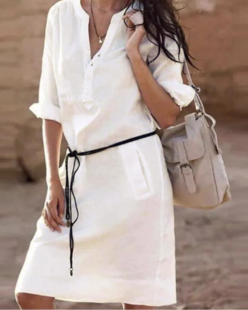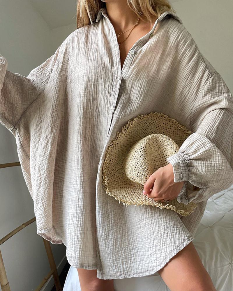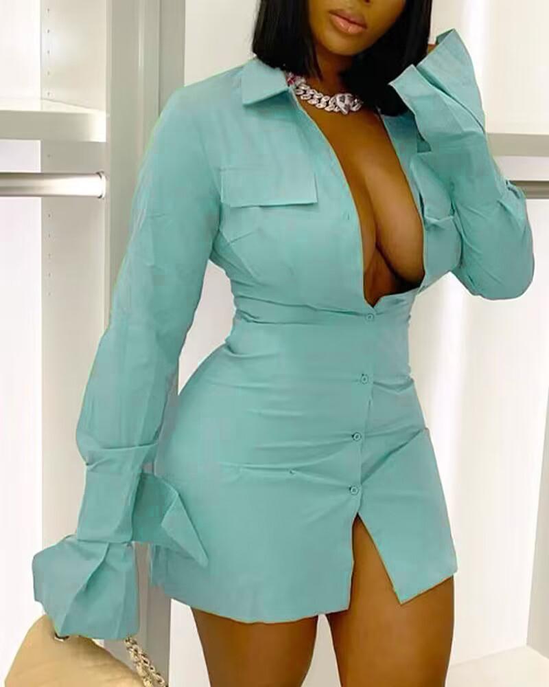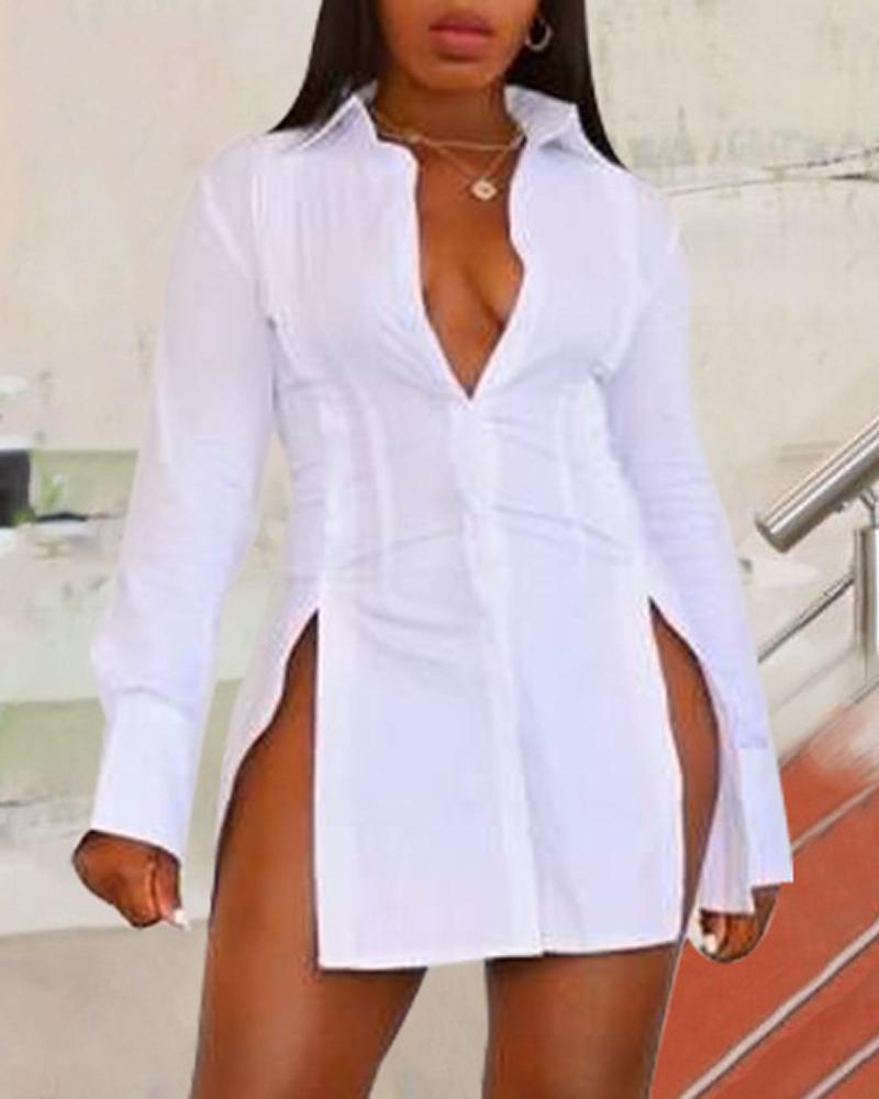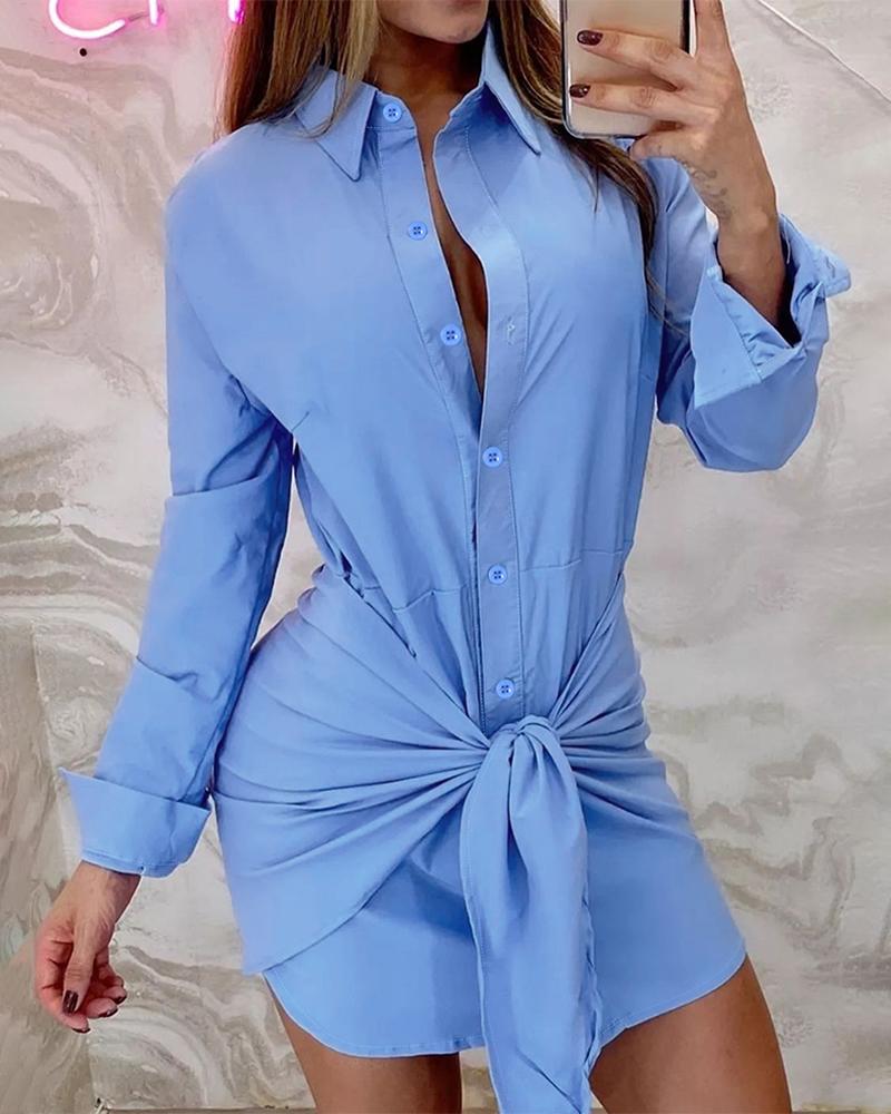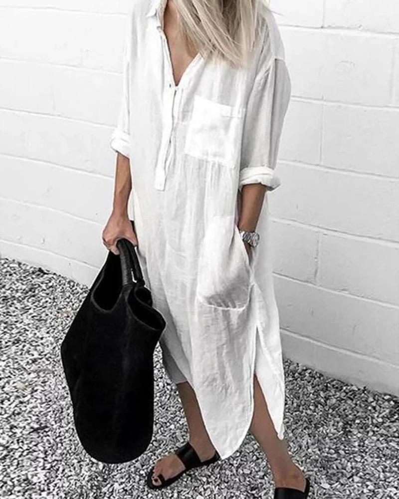 Plus Size Long Sleeve Button Front Shirt Dress |