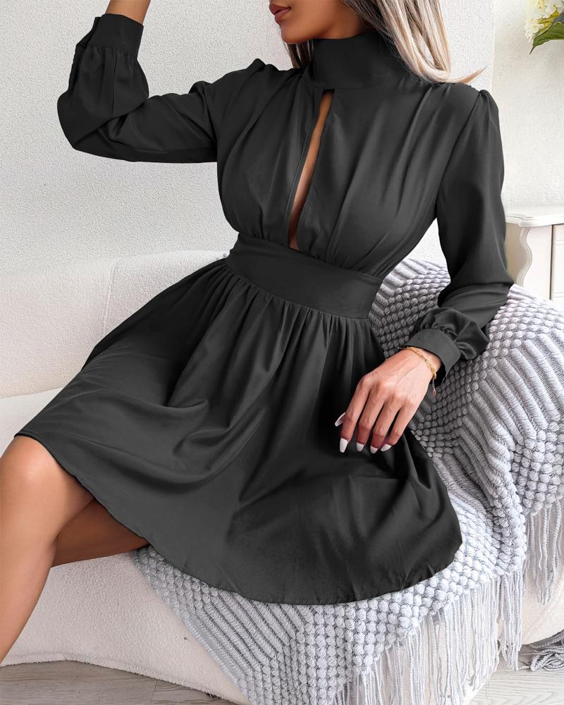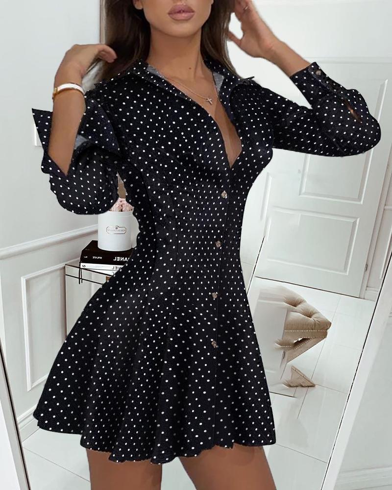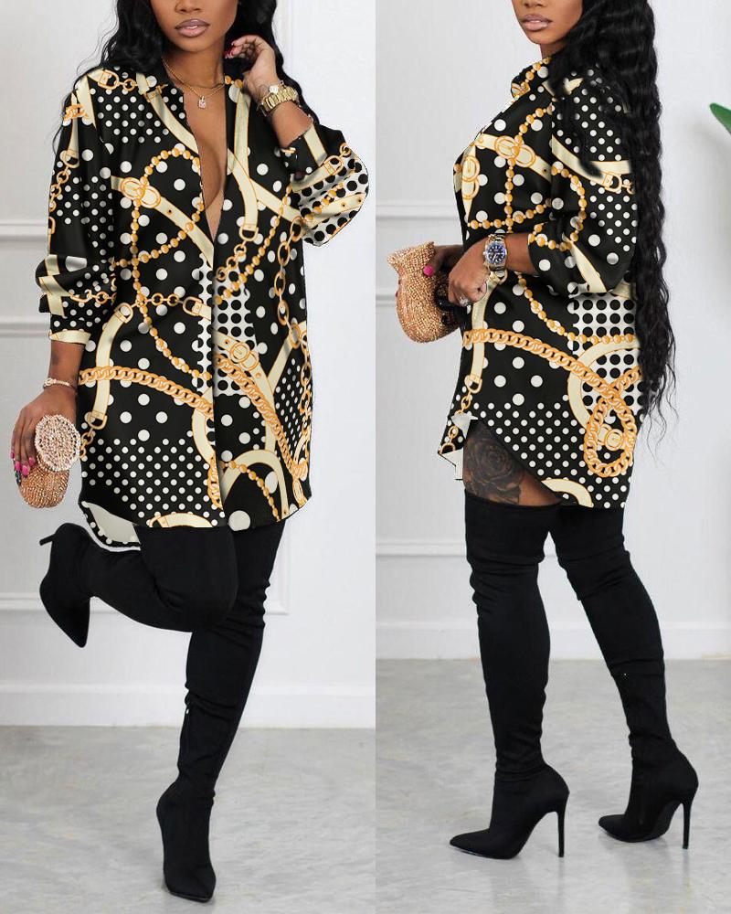 Plus Size Polka Dot Chain Print Long Sleeve Shirt Dress |