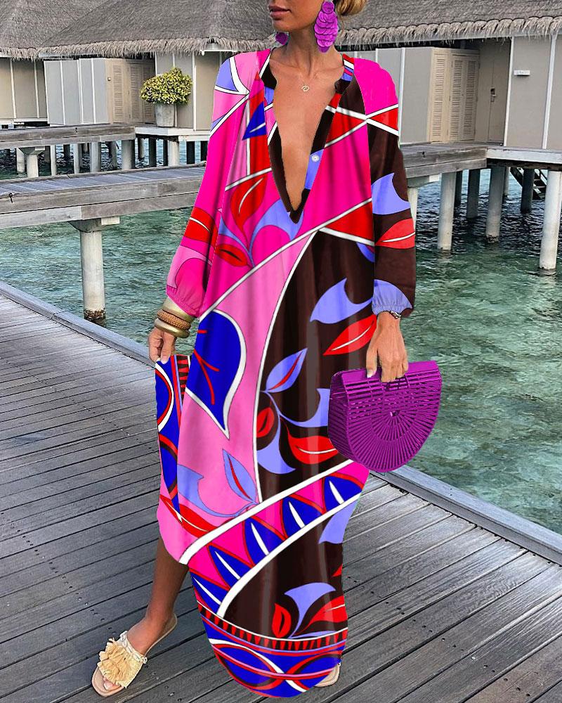 Plus Size Geometric Print Long Sleeve Shirt Dress |