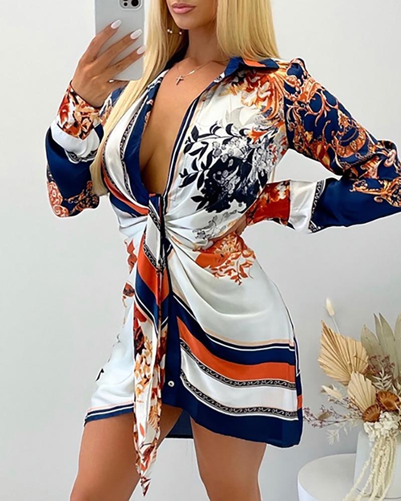 Baroque Print Tied Detail Wrap Shirt Dress |