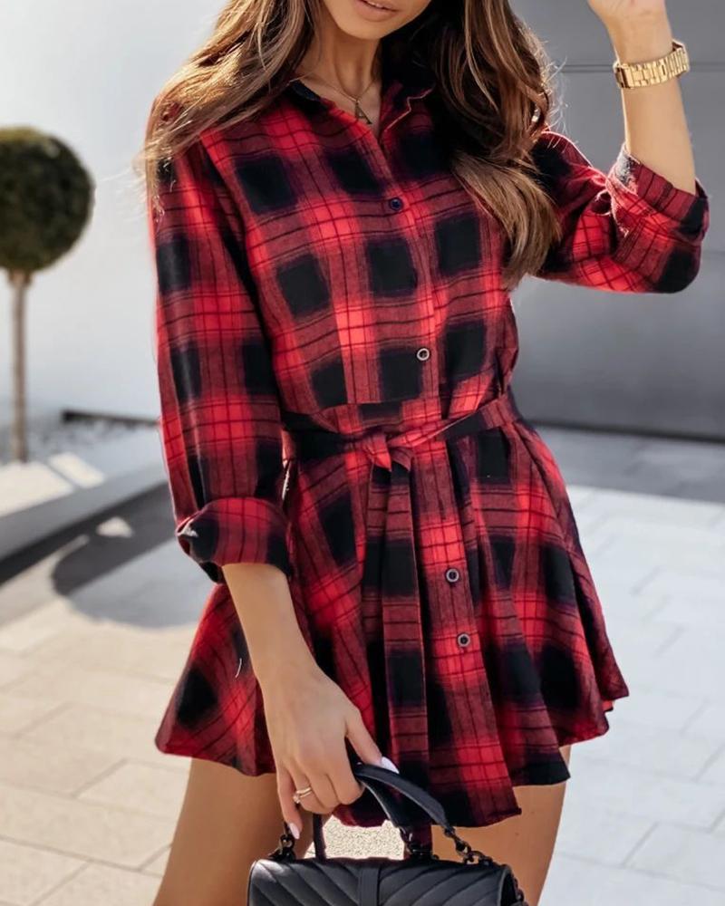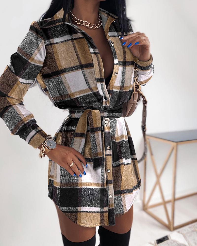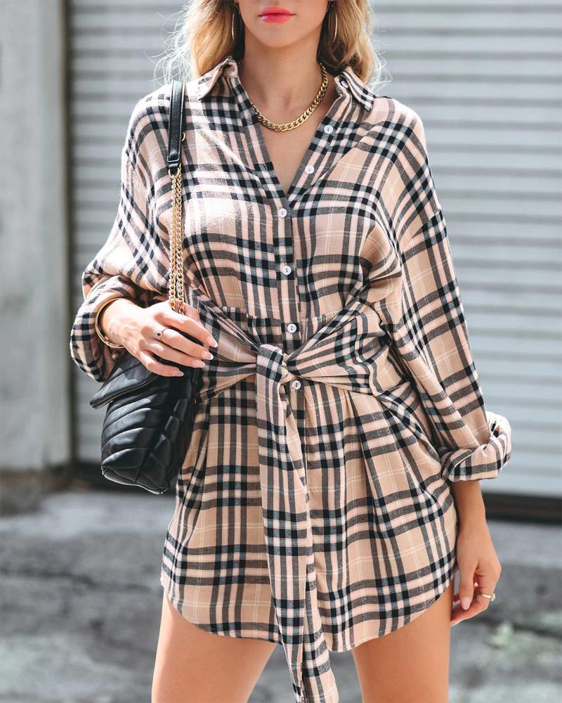 Plaid Print Long Sleeve Tied Detail Shirt Dress |