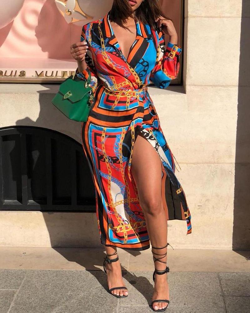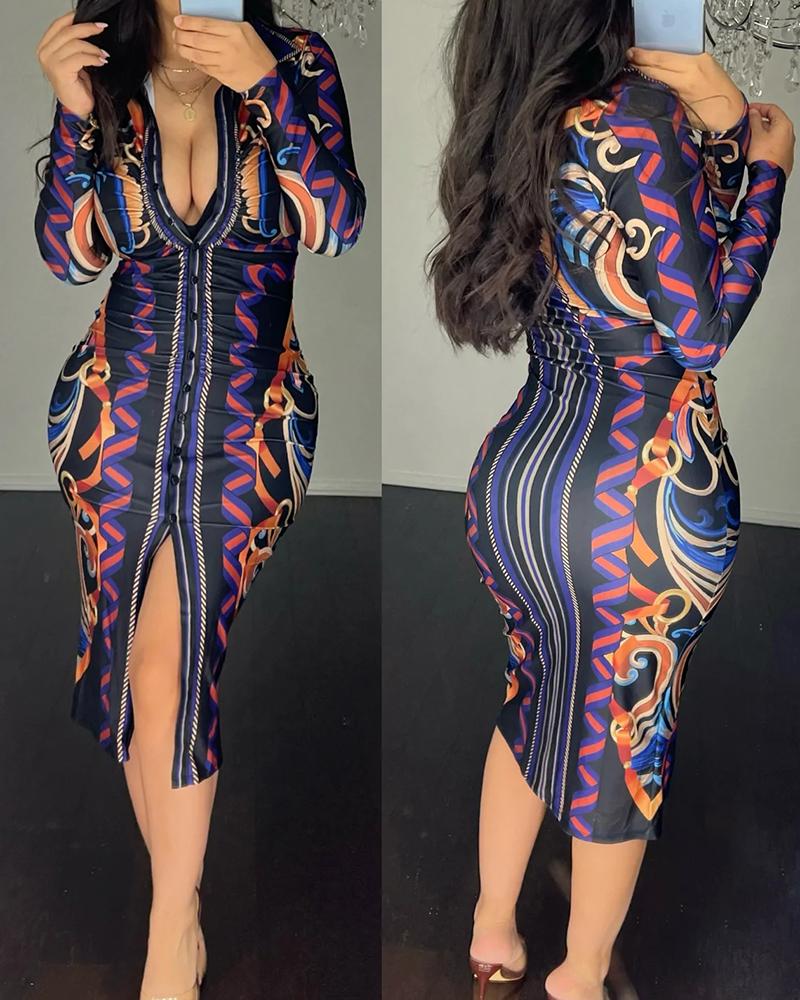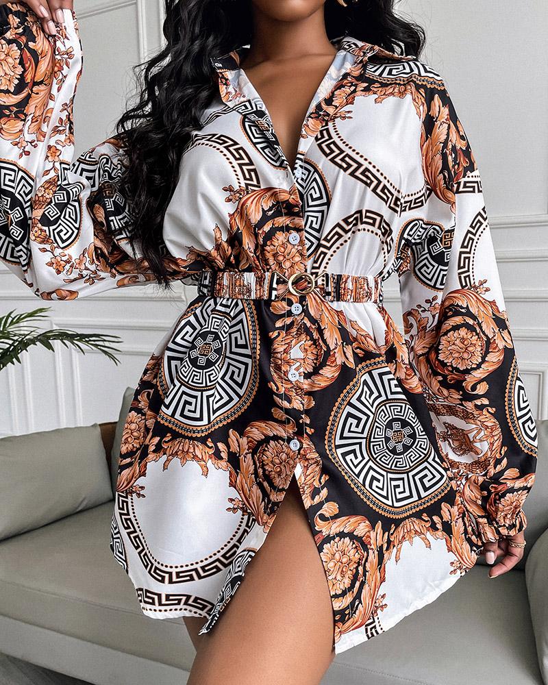 Plus Size Baroque Print Long Sleeve Shirt Dress |