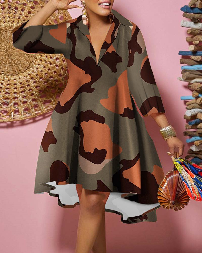 Plus Size Camouflage Print Flowy Shirt Dress |