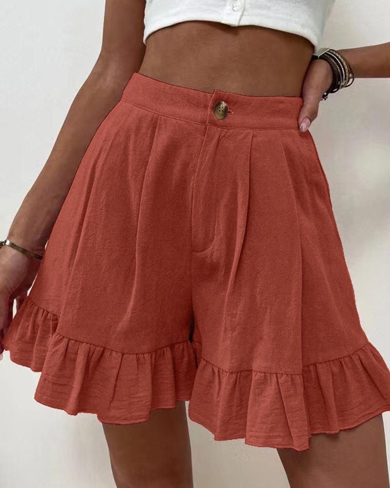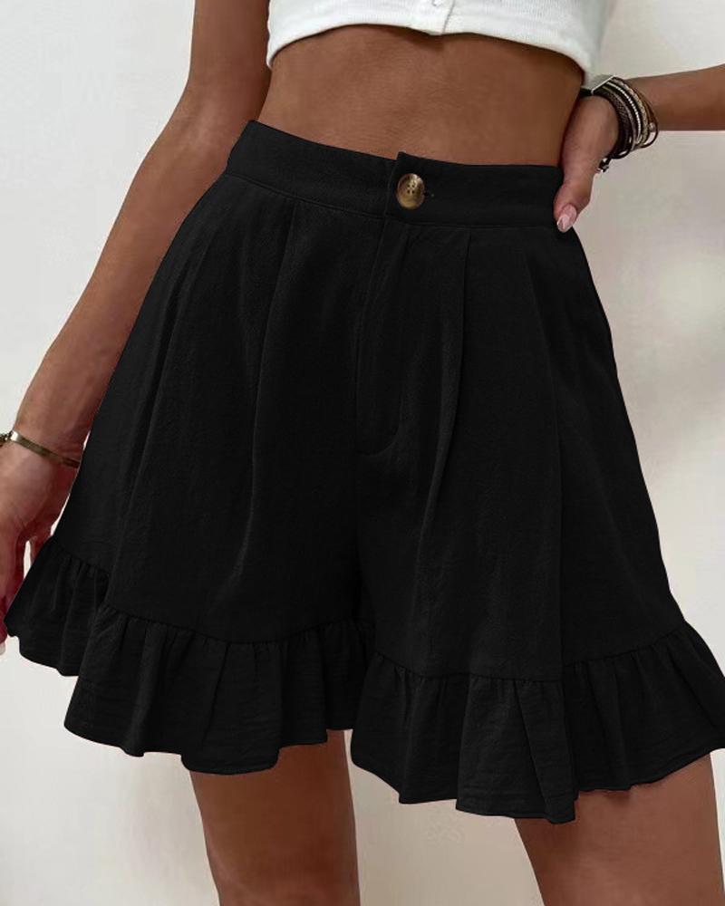 Ruffle Hem High Waist Shorts |
