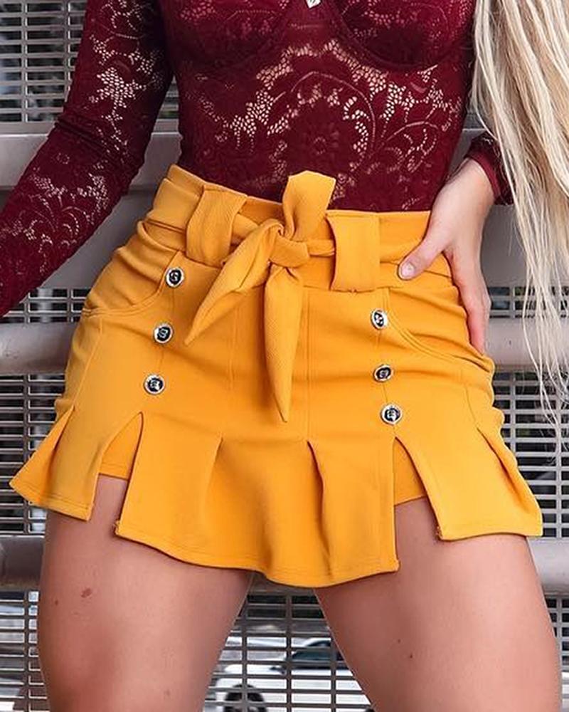 High Waist Tied Detail Slit Buttoned Skorts |