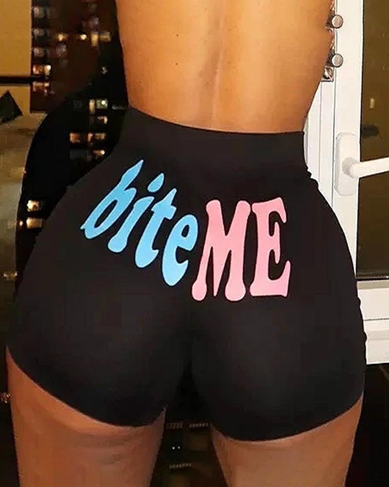 Letter Cartoon Print High Waist Casual Shorts |