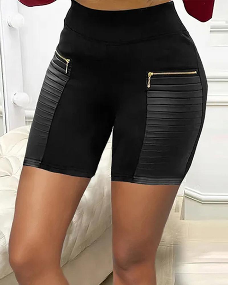 Contrast PU Zipper Detail High Waist Shorts |