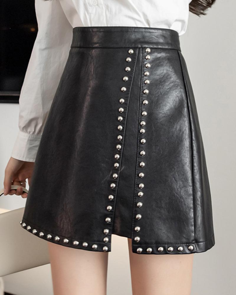 PU Leather Studded High Waist Skirt |