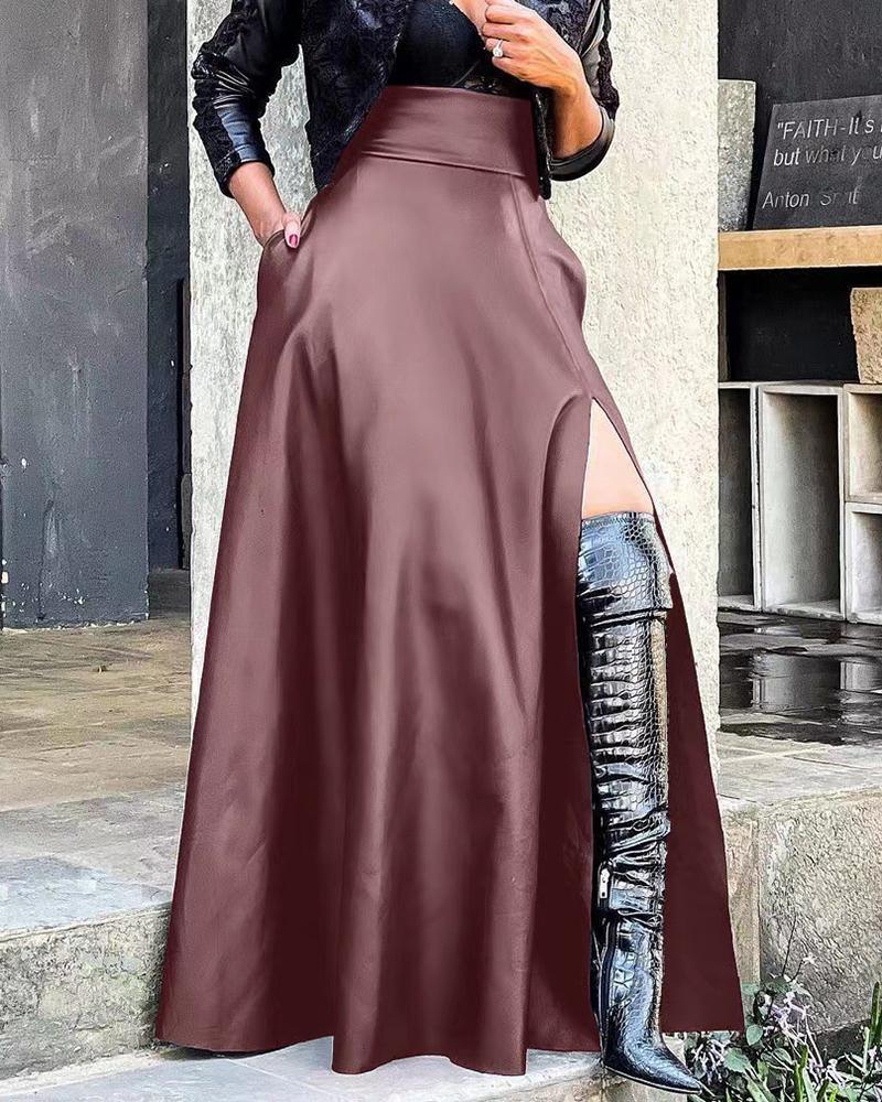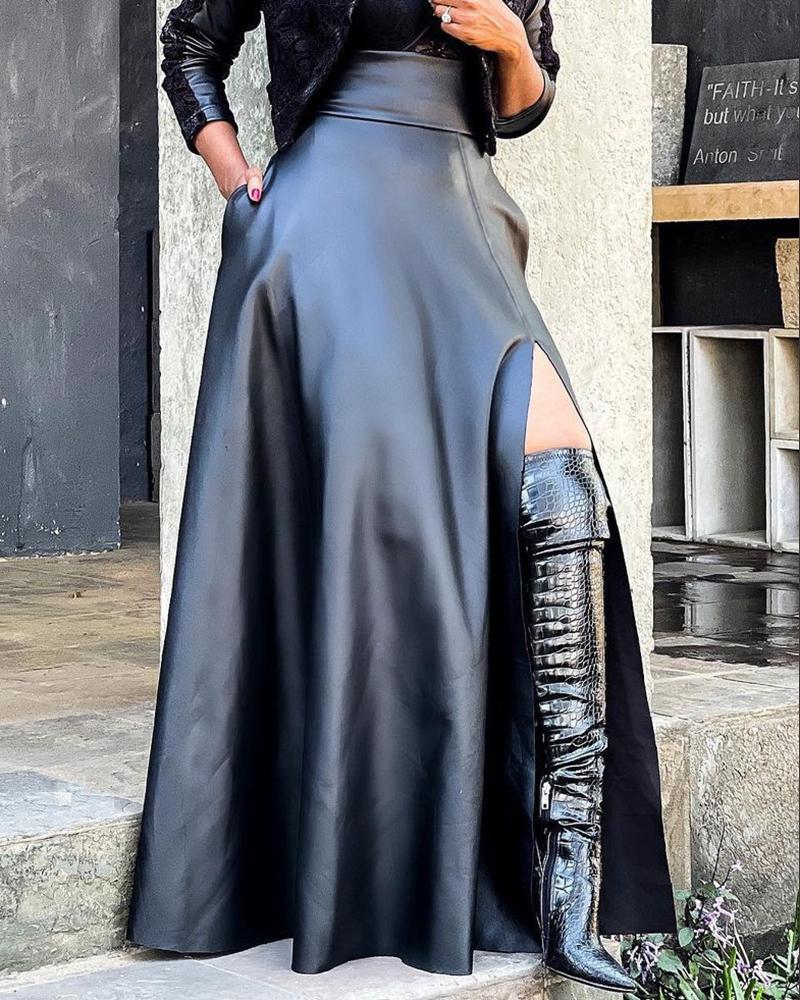PU Leather High Slit Pocket Design Skirt |