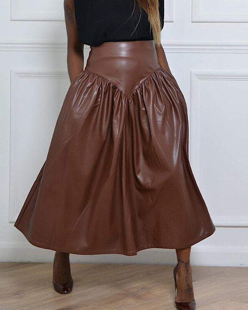 High Waist Ruched PU Leather Skirt |