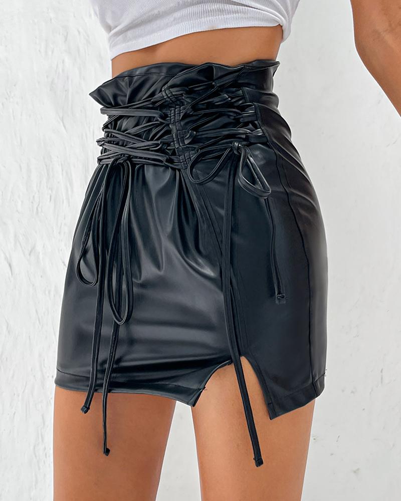 Lace-up High Waist PU Leather Mini Skirt |