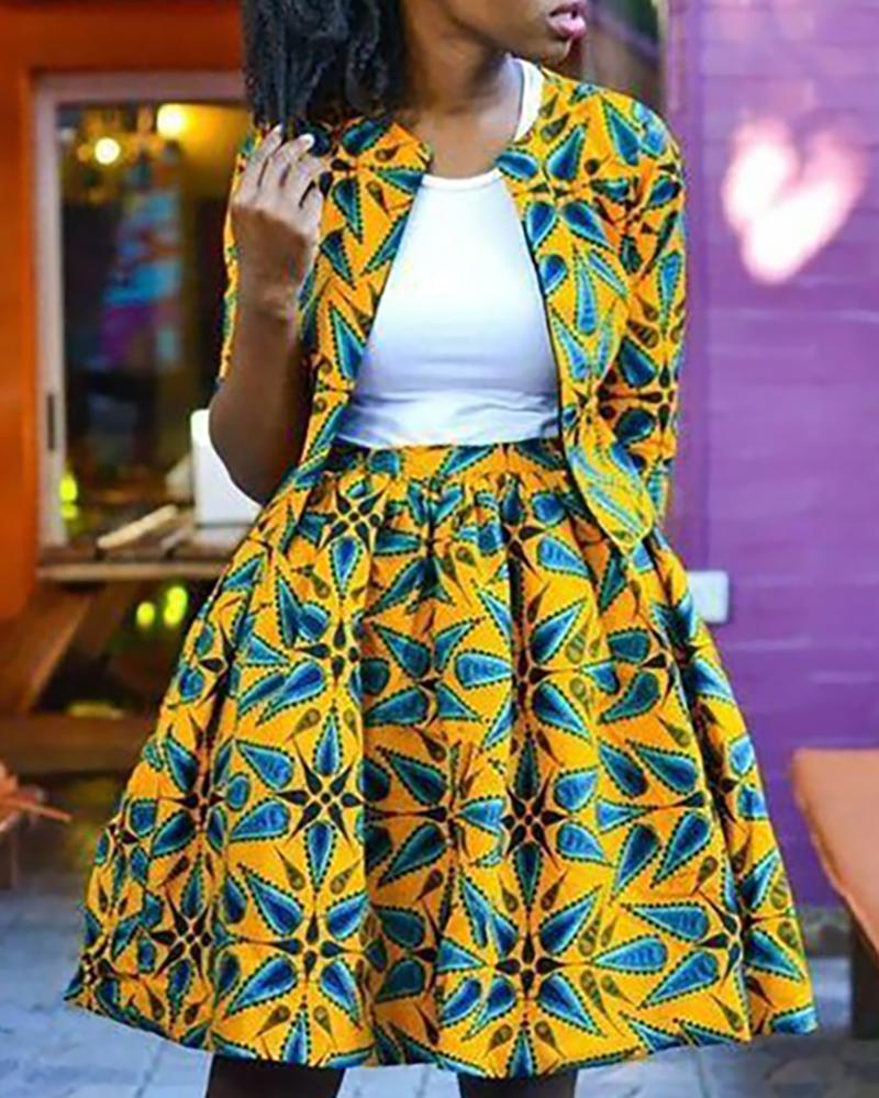 Print Tight Waist Pleated Mini Skirt |