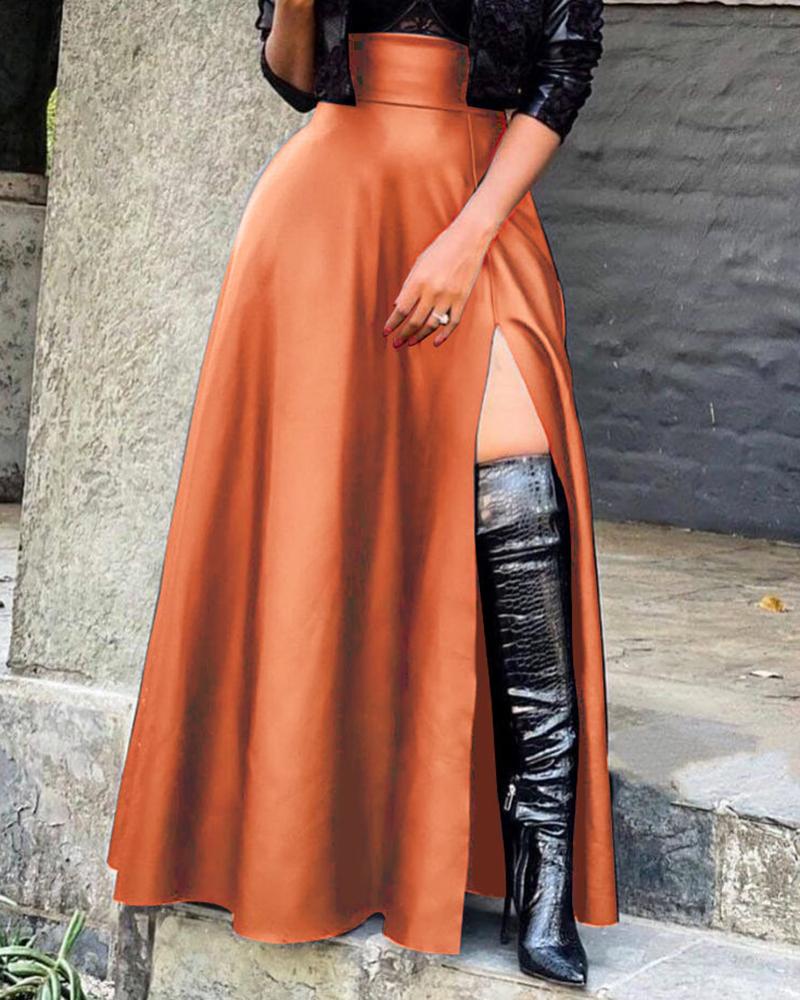 High Waist Slit PU Leather Skirt |