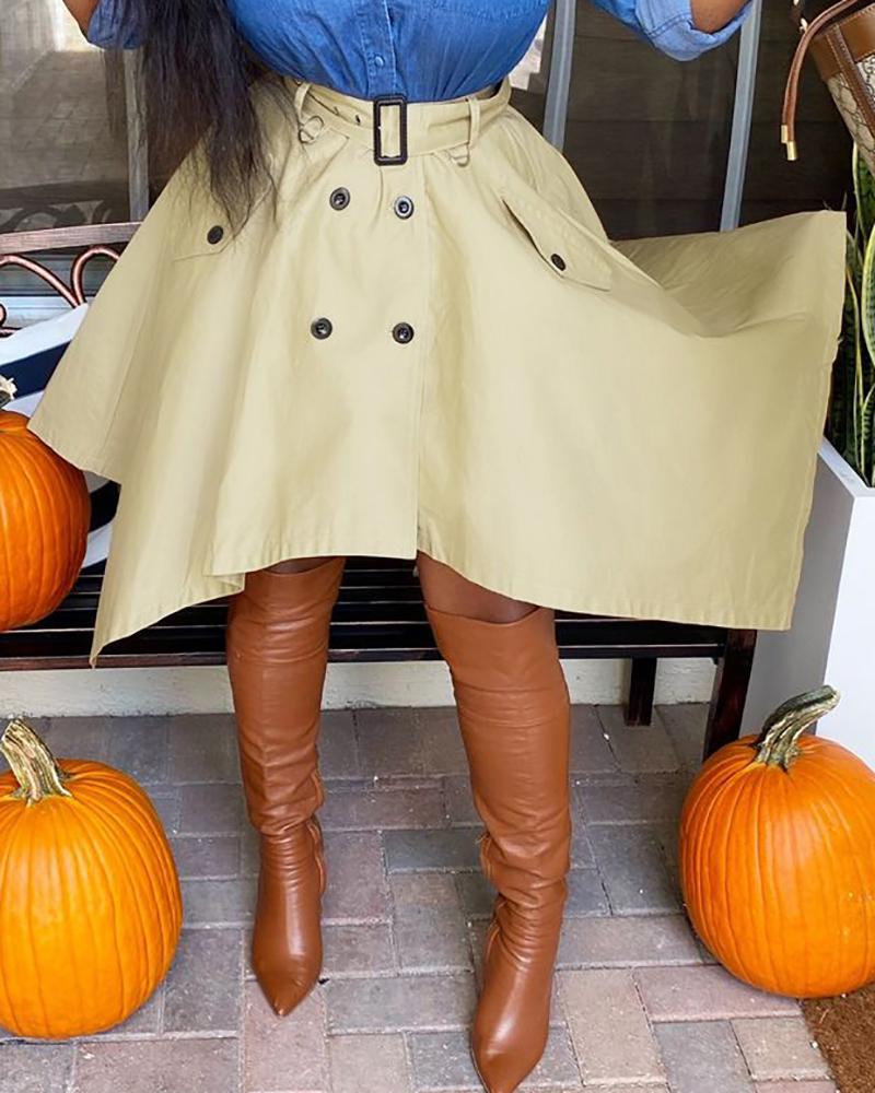 High Waist Buttoned Asymmetrical Skirt |