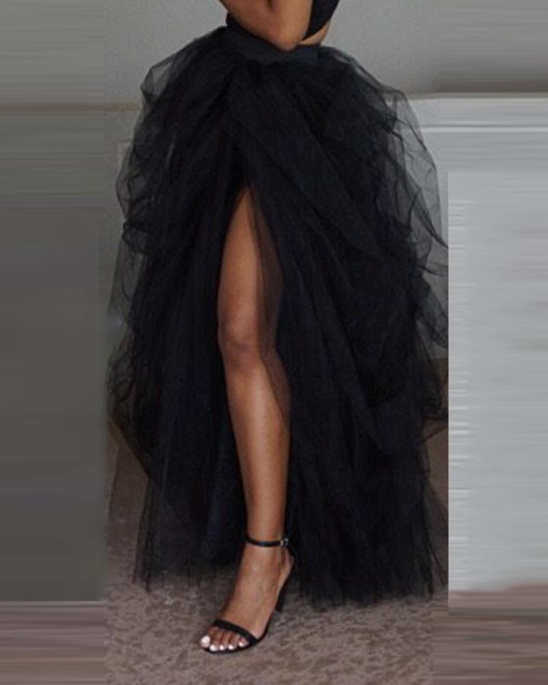 High Slit Layered Sheer Mesh Tulle Tutu Skirt |