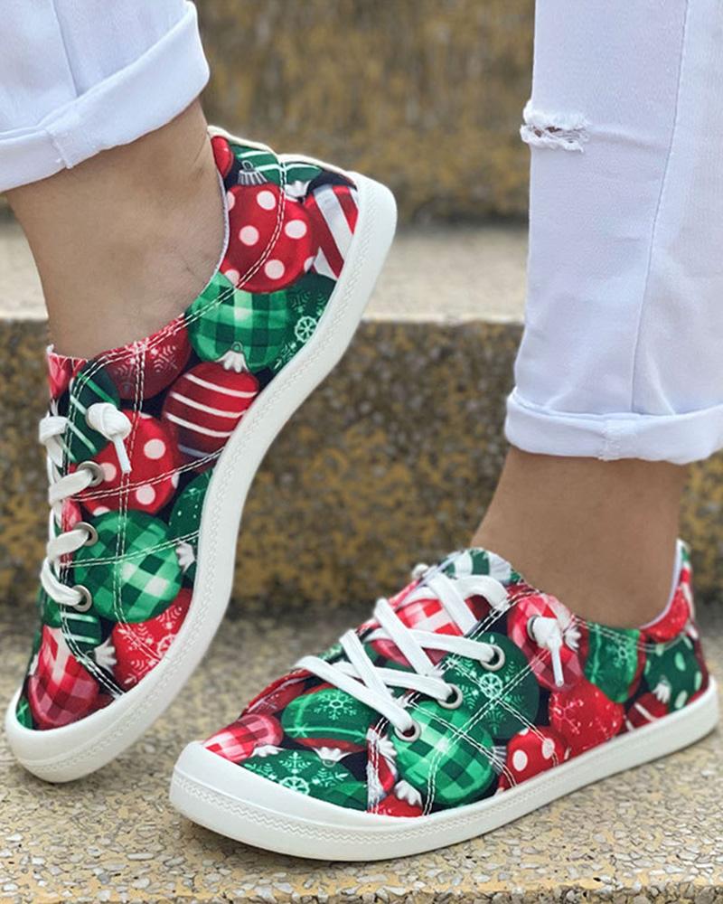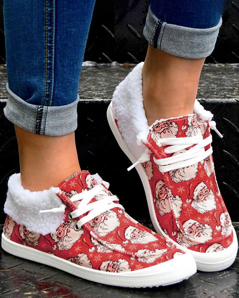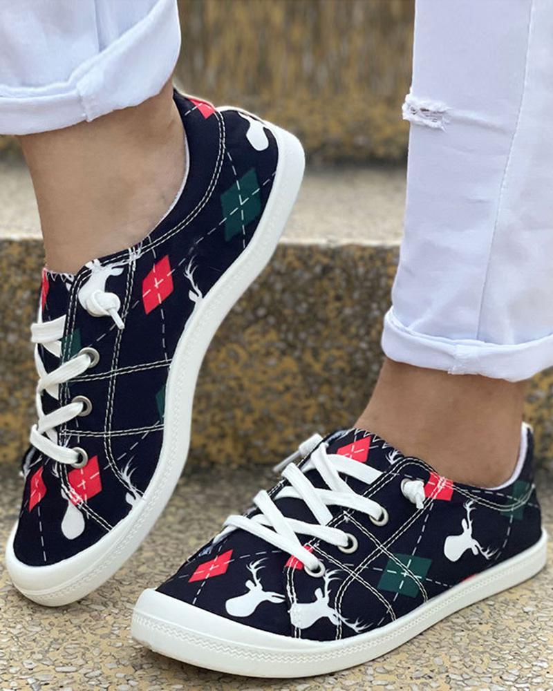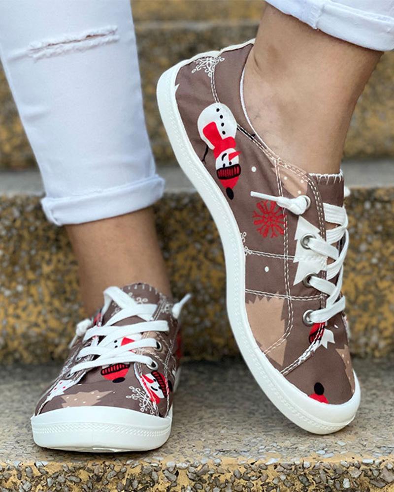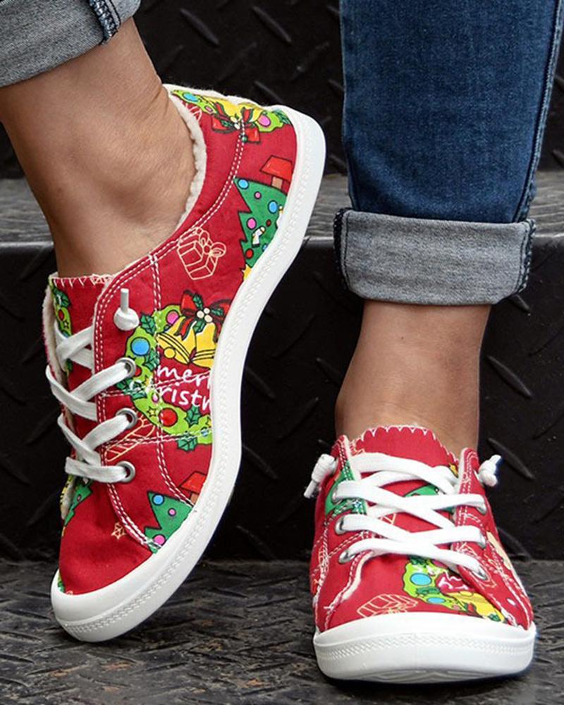 Christmas Graphic Print Lace-up Canvas Slip-On |