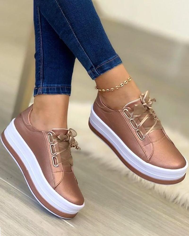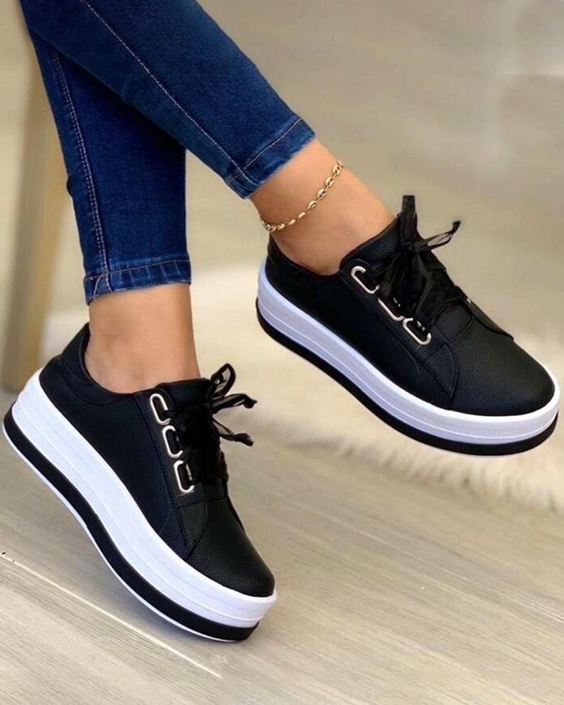 Contrast Stitch Lace-Up Muffin Sneakers |