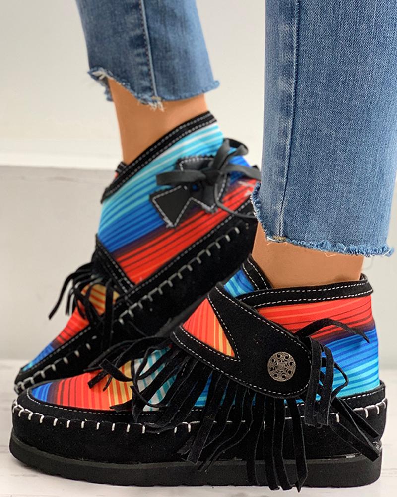 Valentine's Day Feather Print Lace-up Fringe Hem Canvas Sneakers |