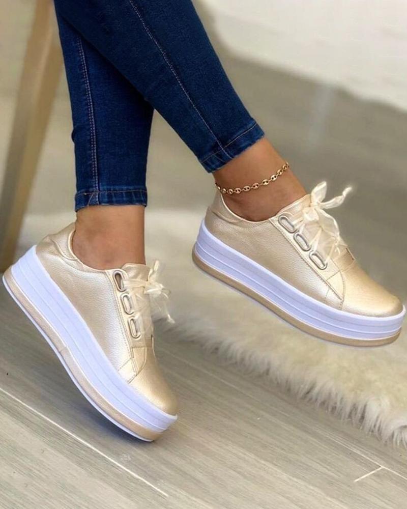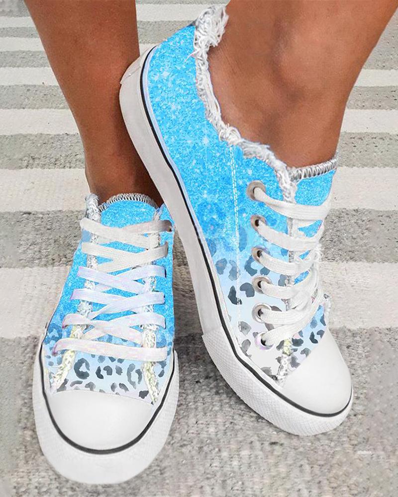 Glitter Lace-Up Star Pattern Casual Sneakers |