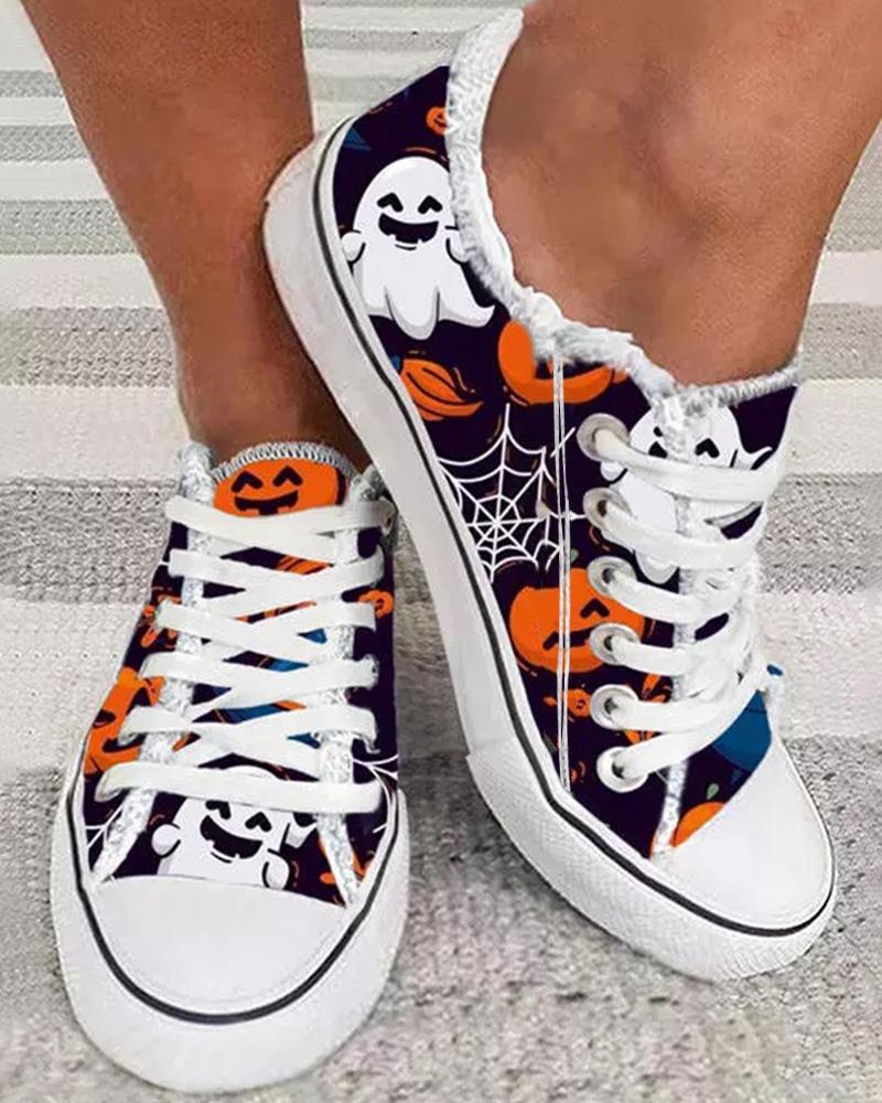 Halloween Ghost Pumpkin Print Canvas Sneakers |