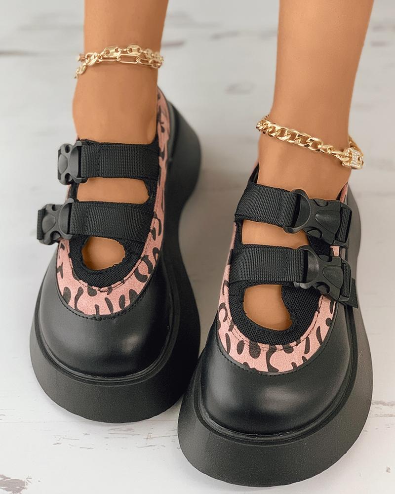Buckled Cheetah Print Flatform Slip On Loafer |