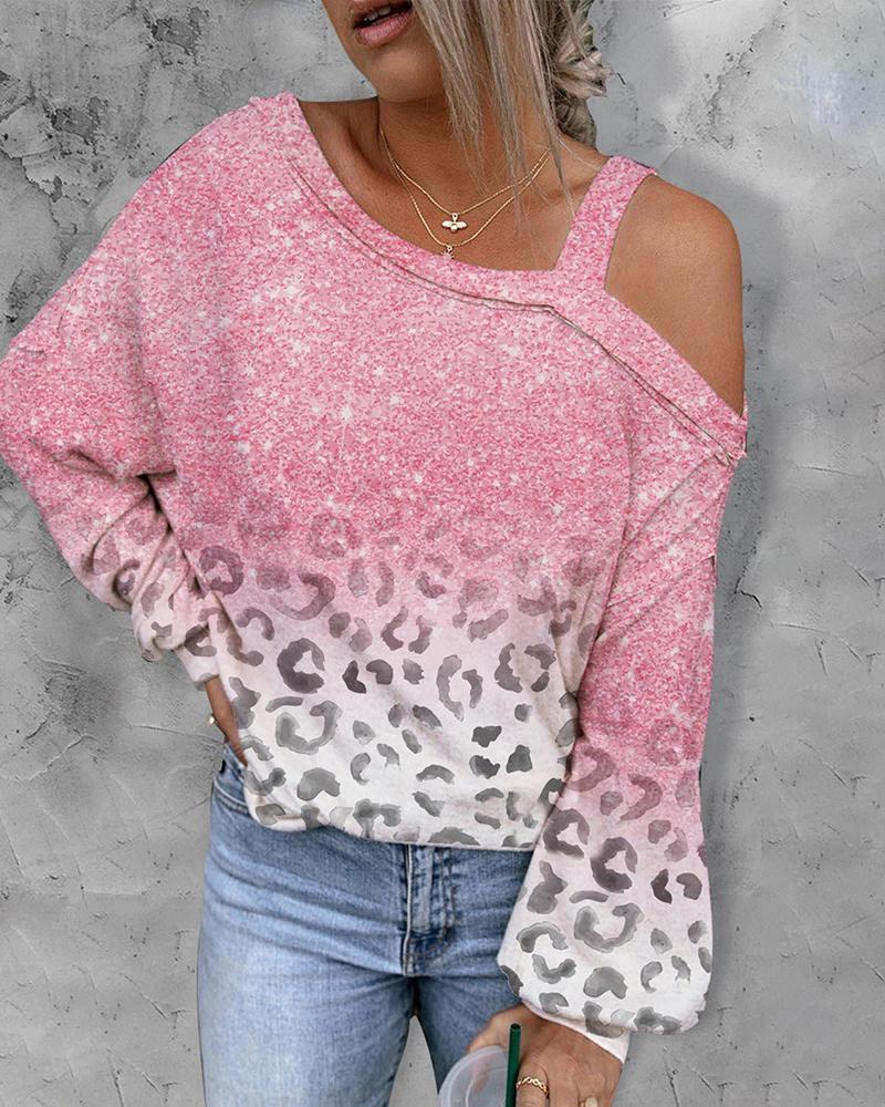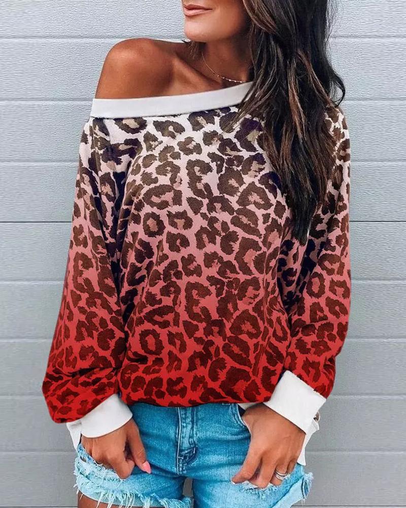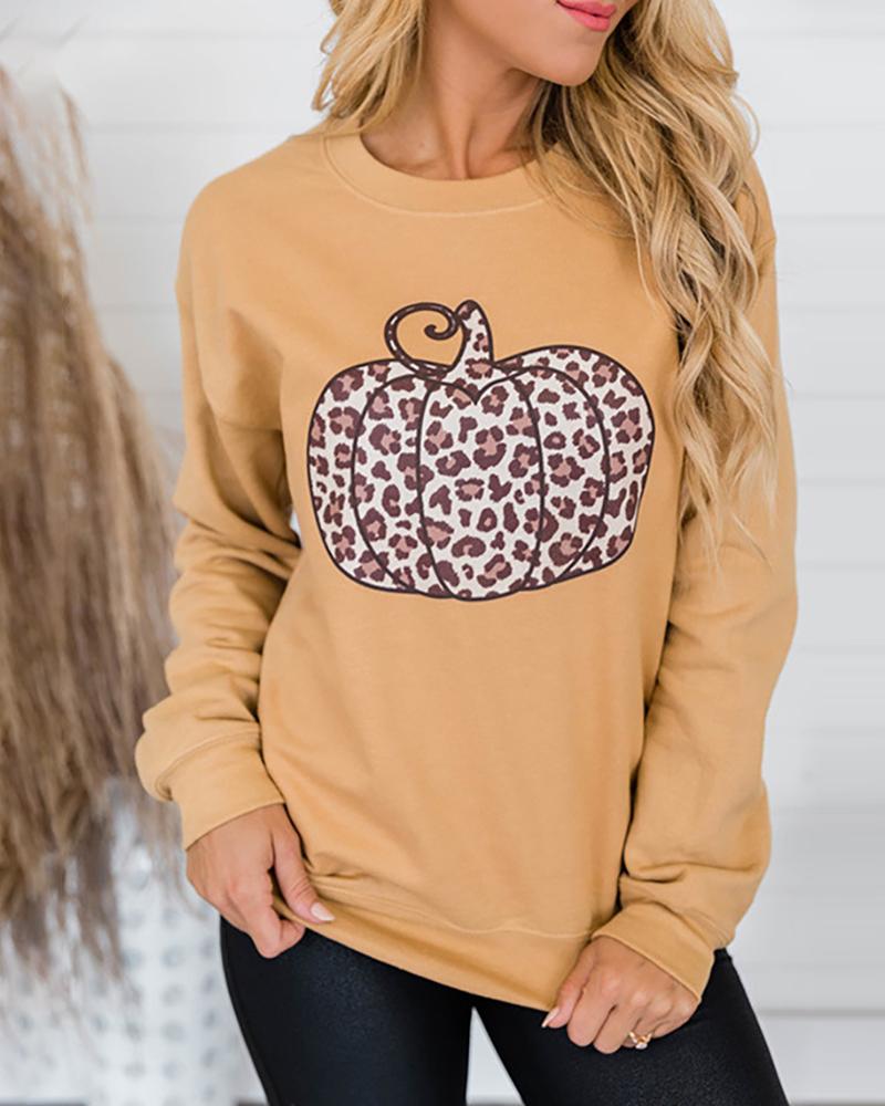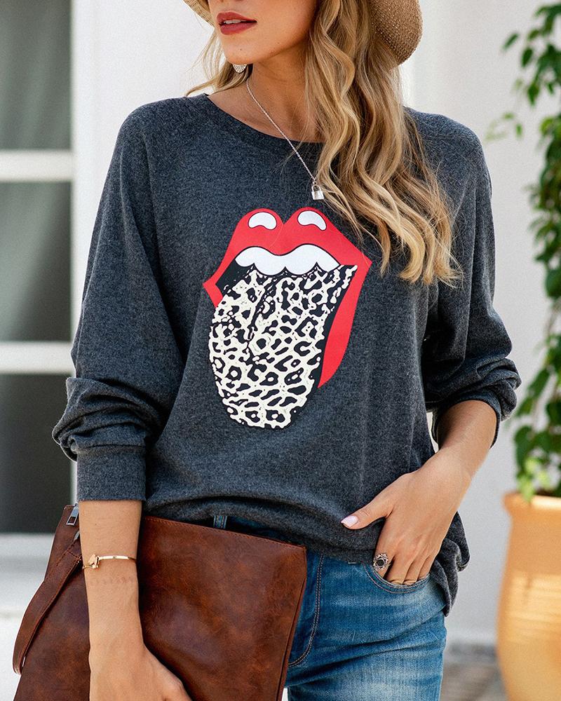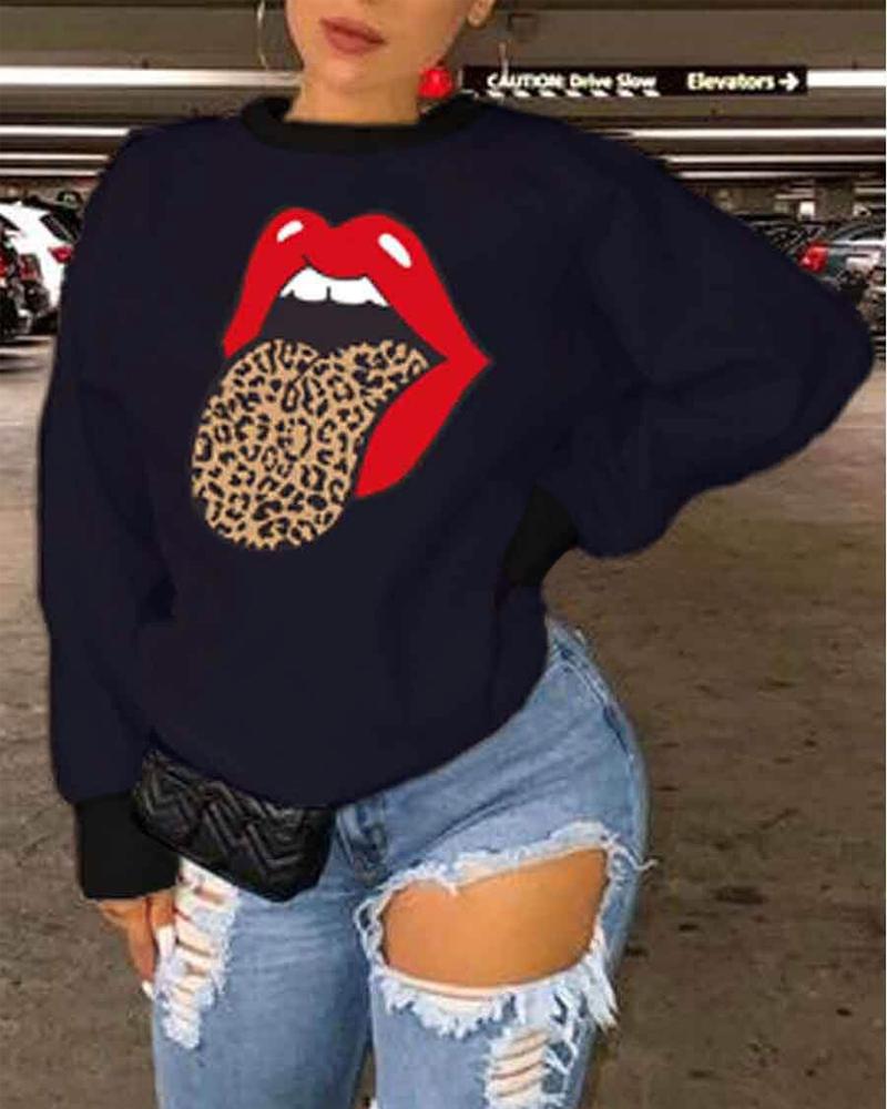 Plus Size Leopard Lip Print Long Sleeve Casual Sweatshirt |