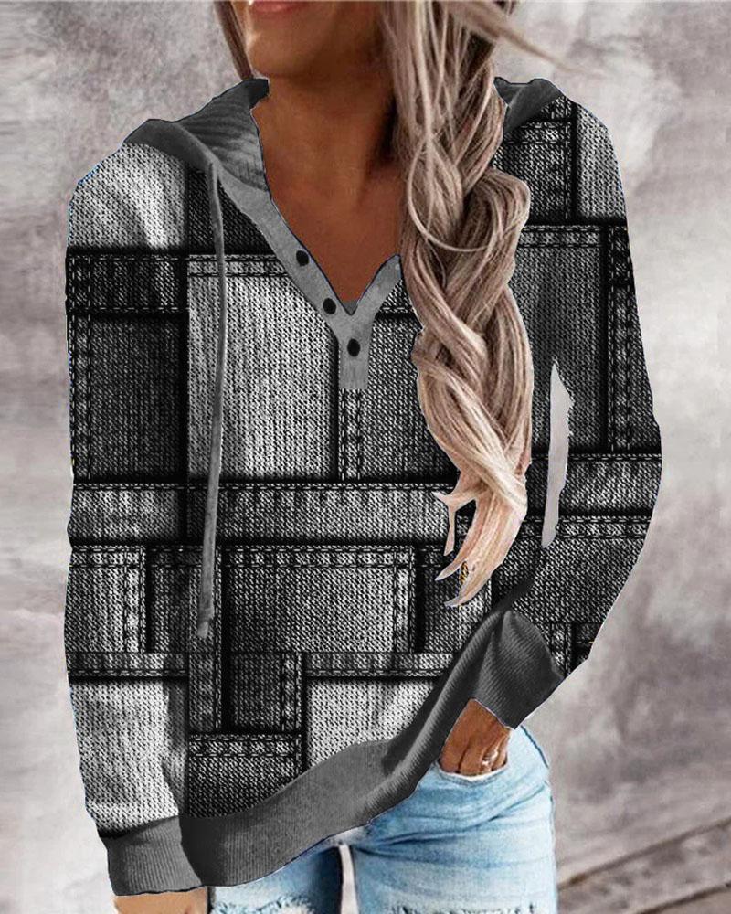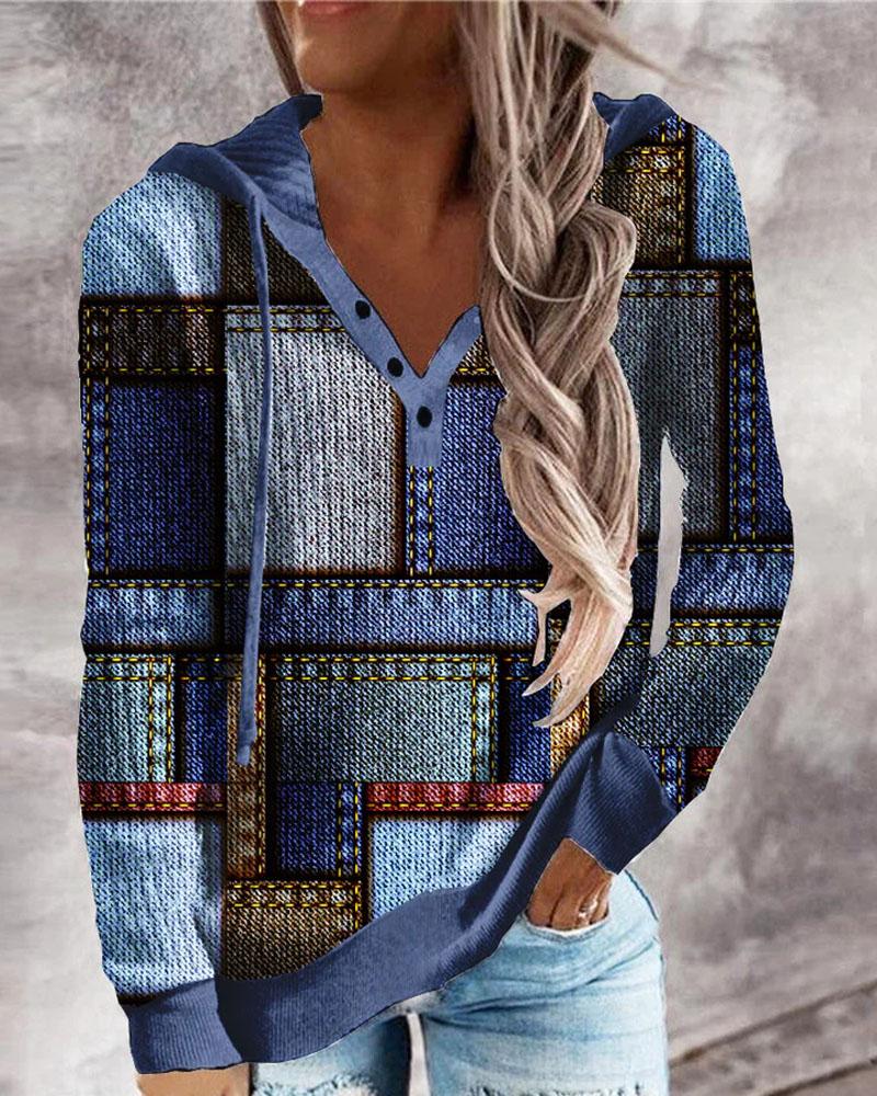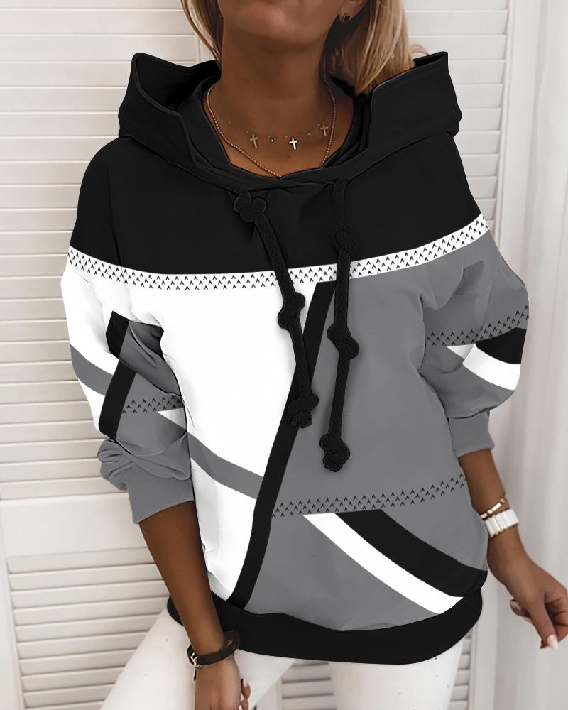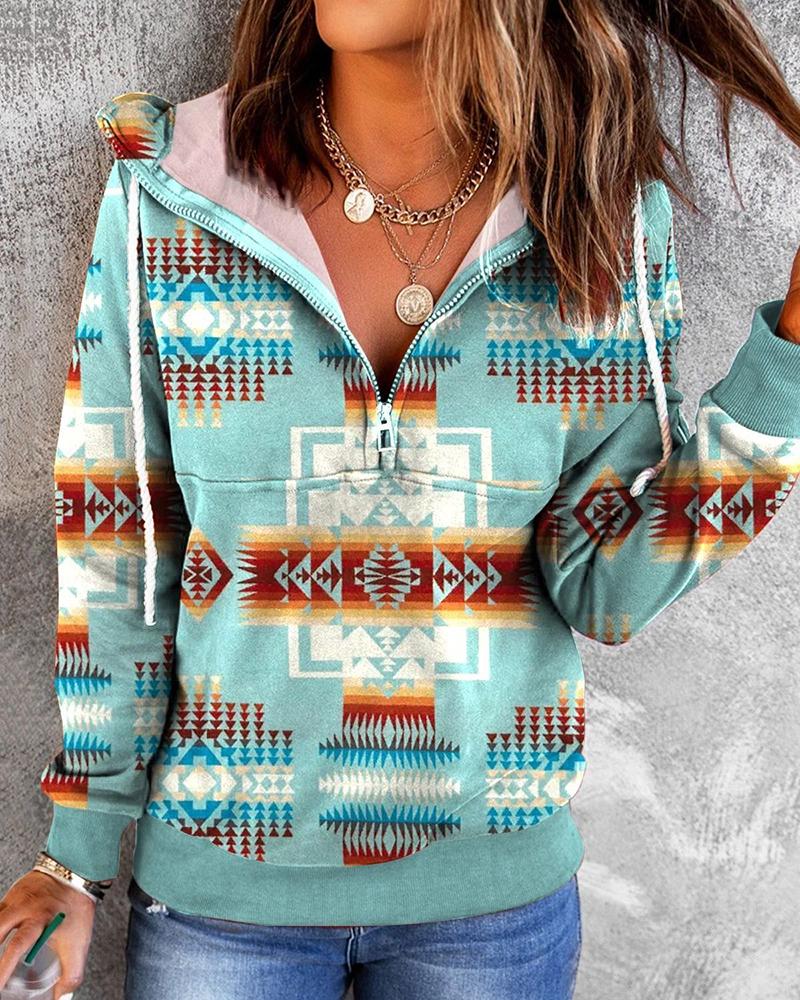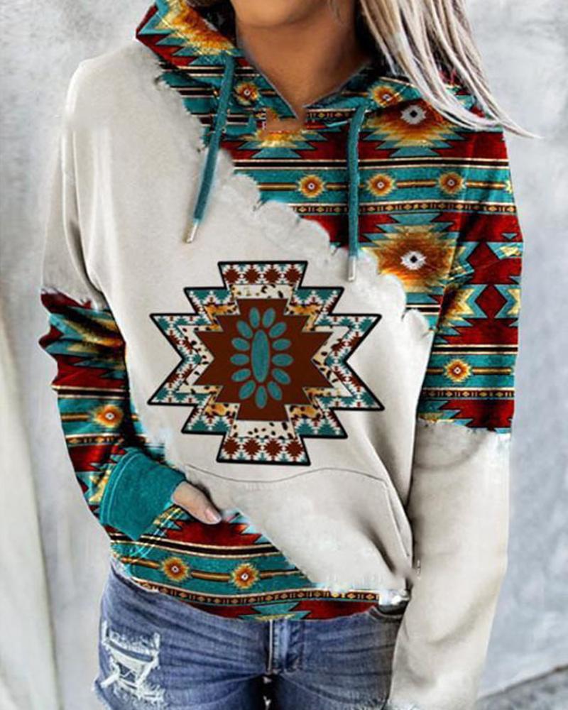 Plus Size Aztec Geometric Print Long Sleeve Hoodie |