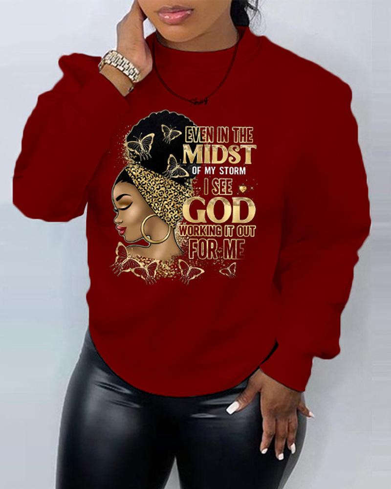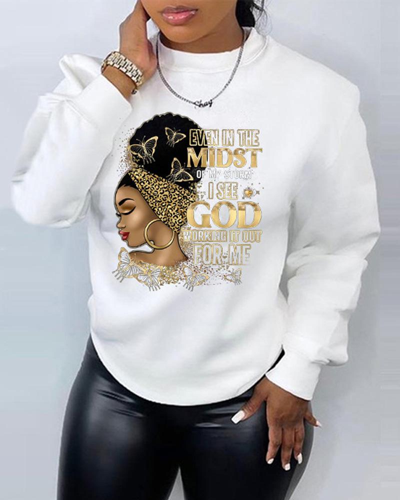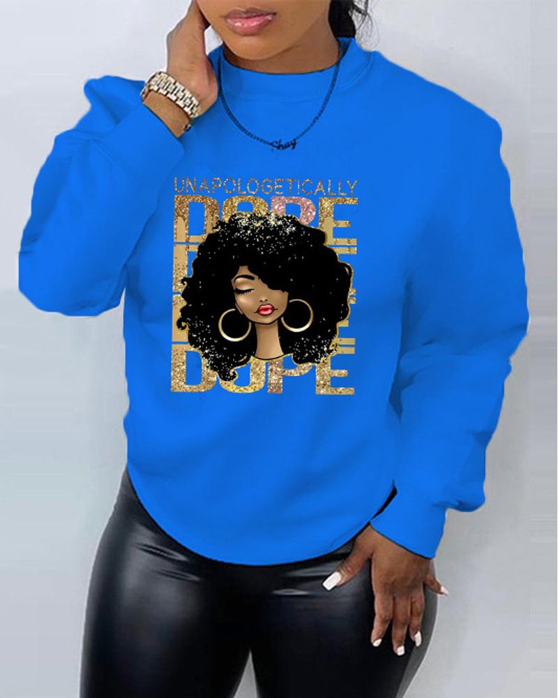 Plus Size Letter Print Long Sleeve Casual Sweatshirt |