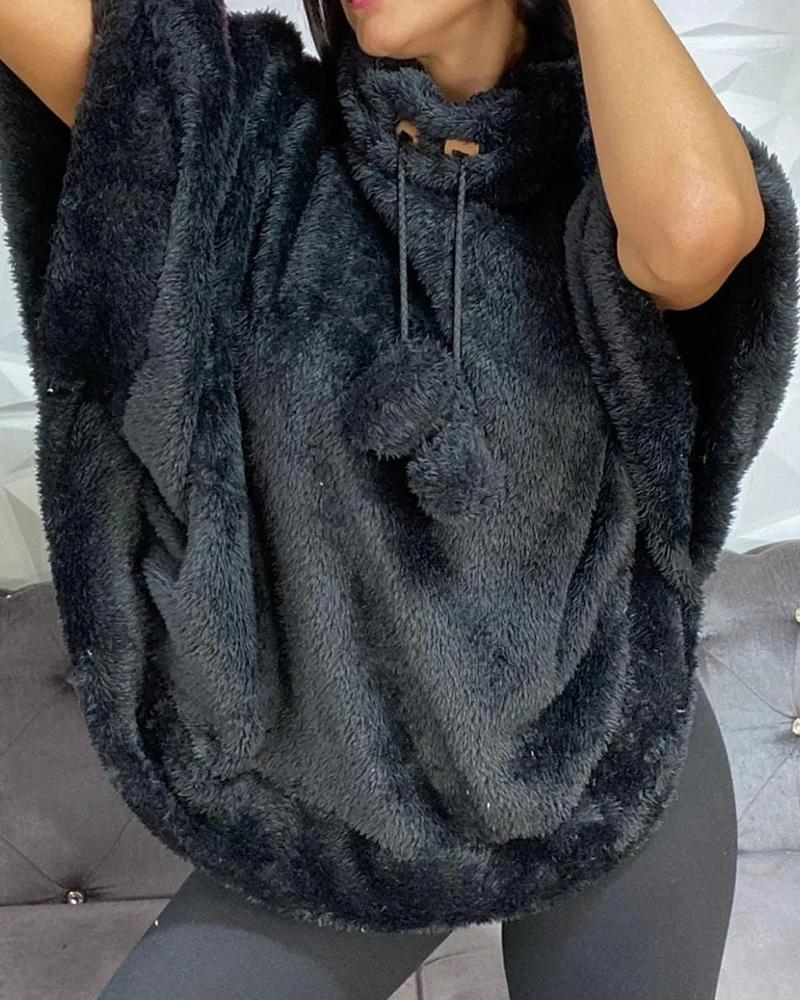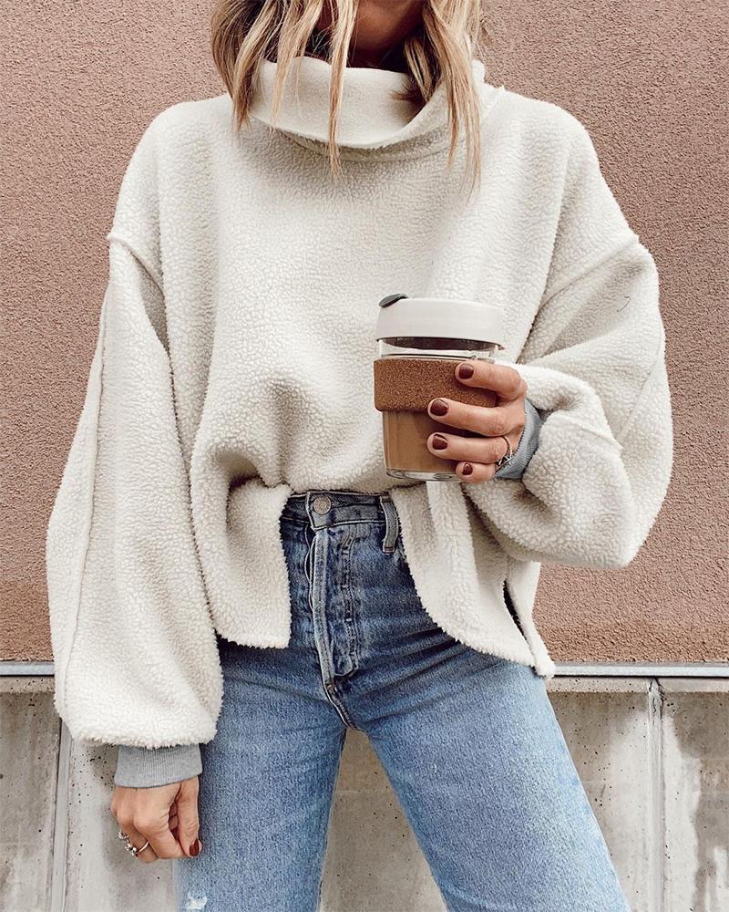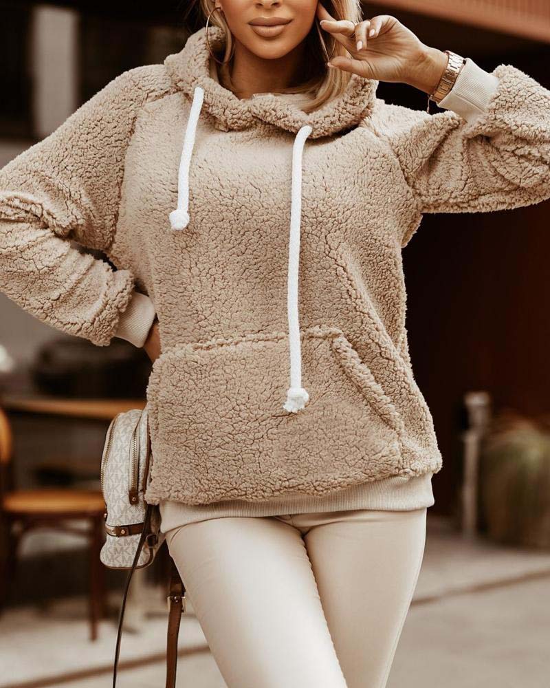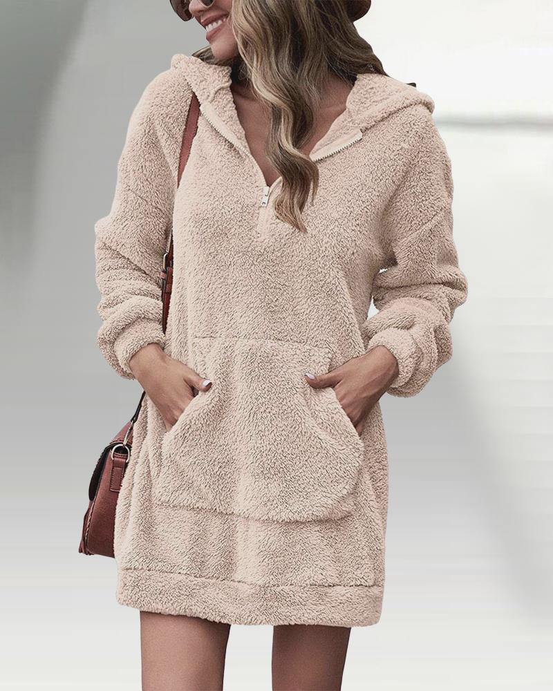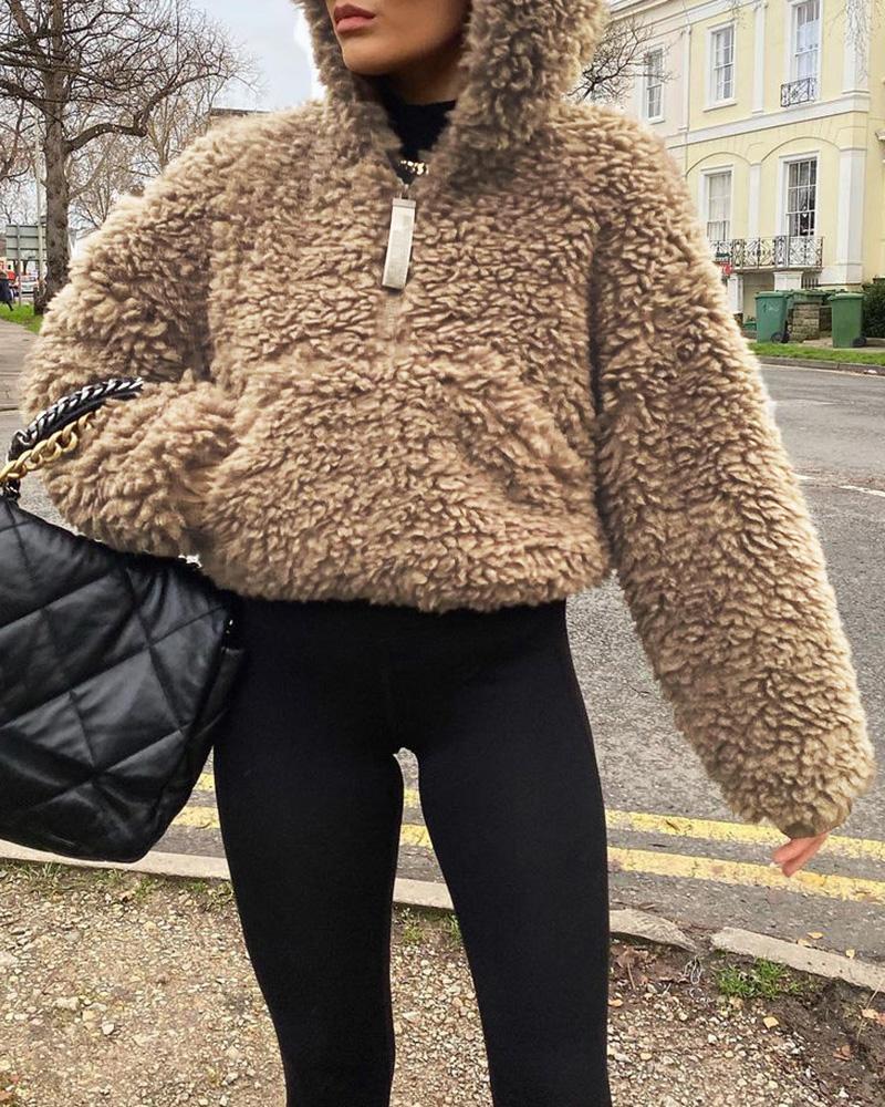 Long Sleeve Zipper Pocket Design Teddy Hoodie |