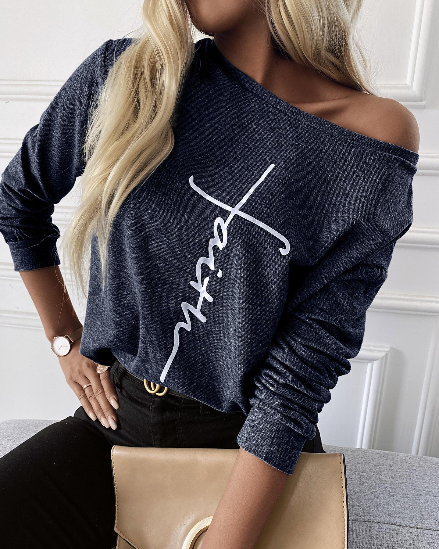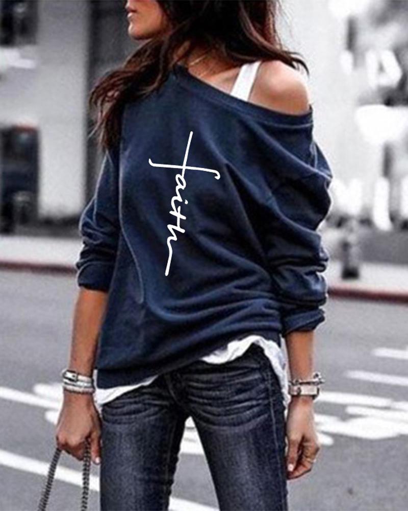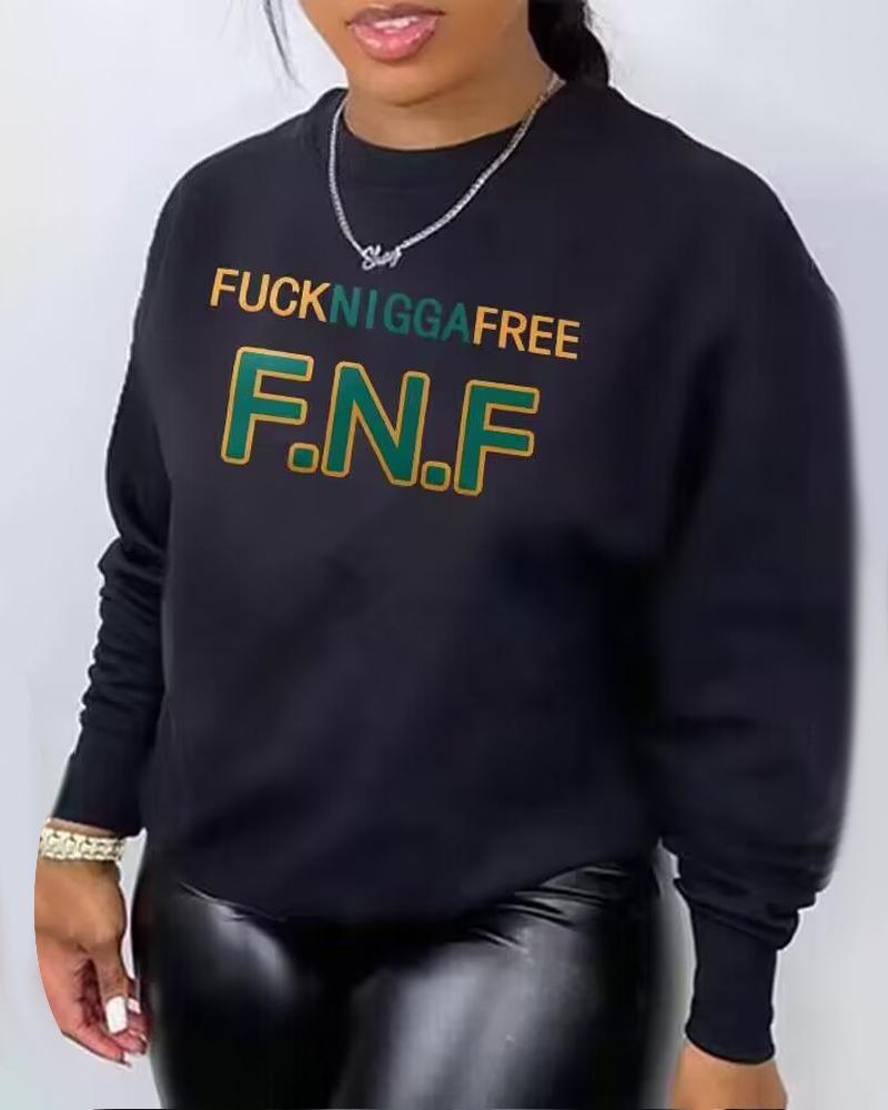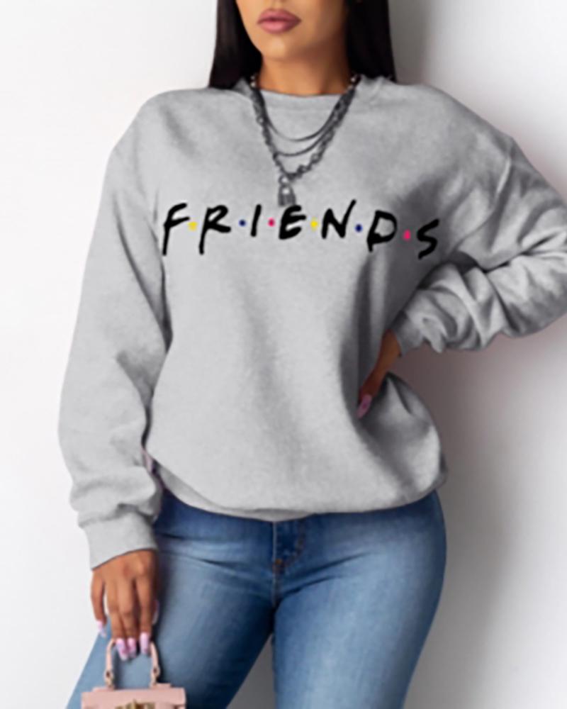 Letter Print Long Sleeve O Neck Casual Sweatshirt |