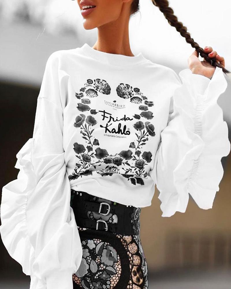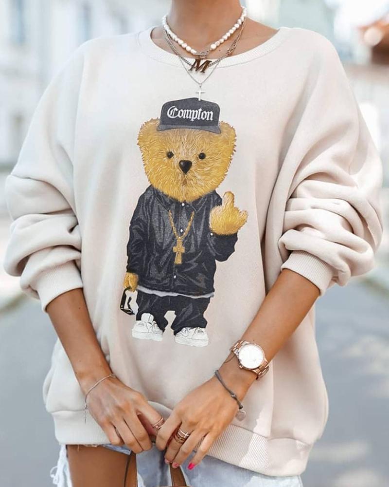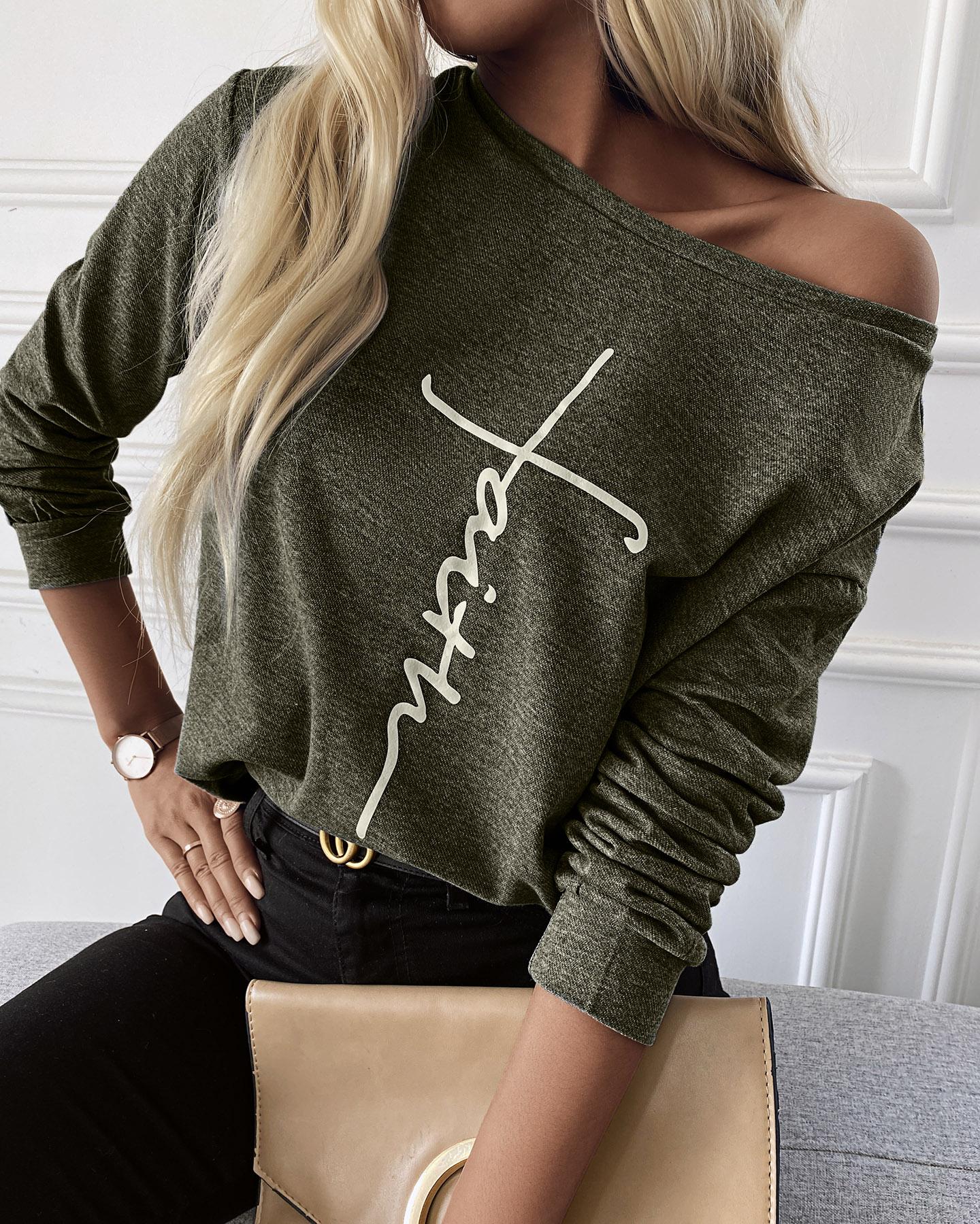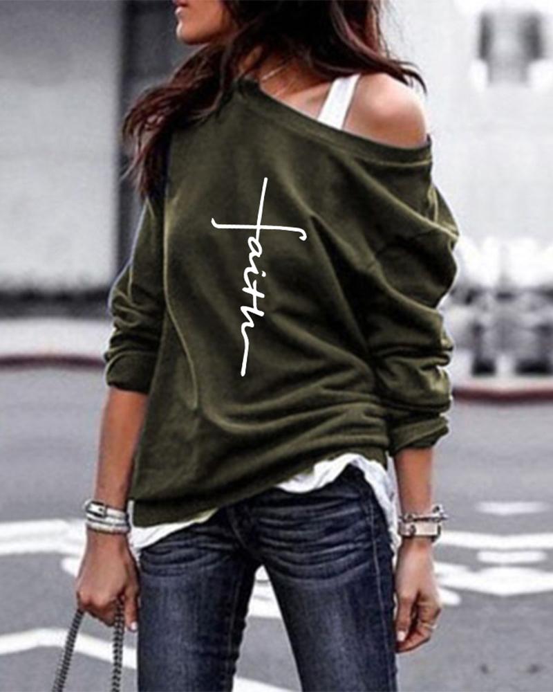 Letter Print Long Sleeve O Neck Casual Sweatshirt |