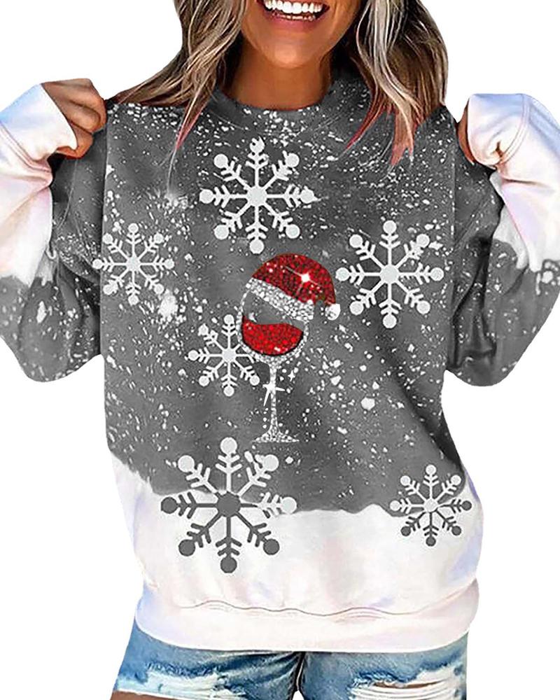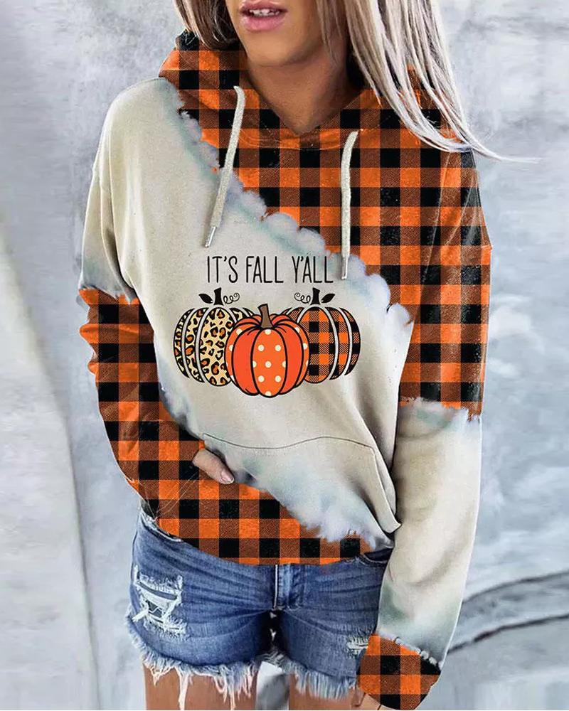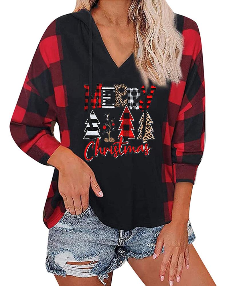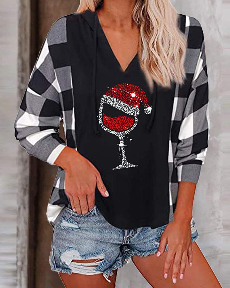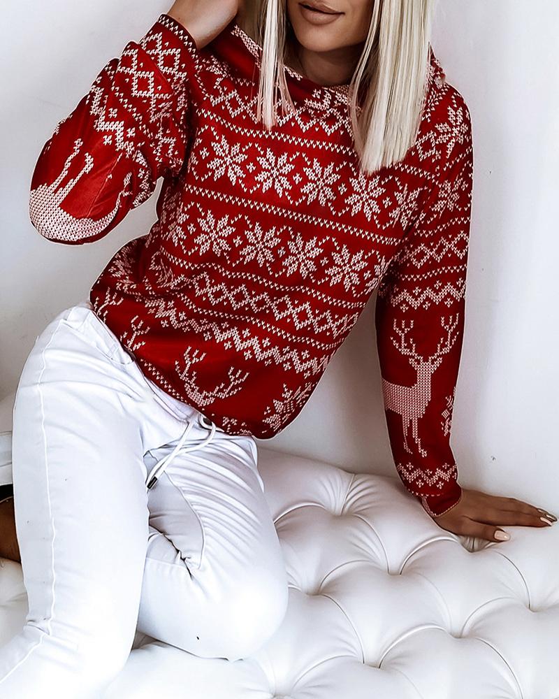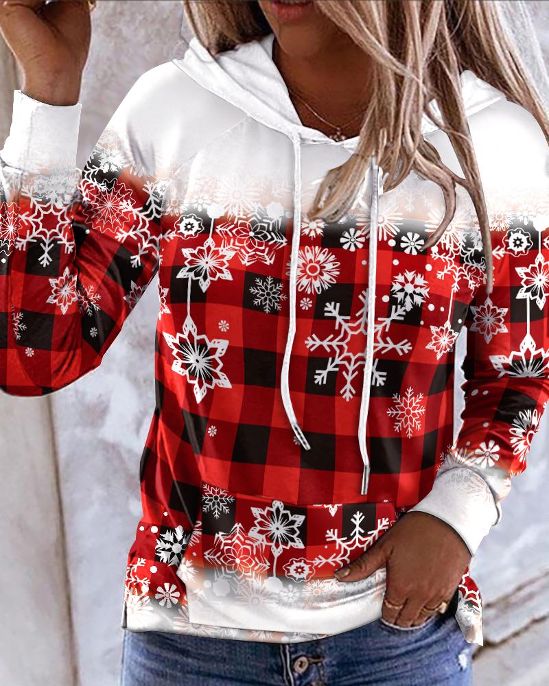 Christmas Snowflake Plaid Print Long Sleeve Hoodie |