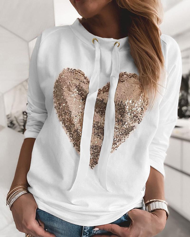 Plus Size Rhinestone Letter Heart Pattern Sweatshirt |