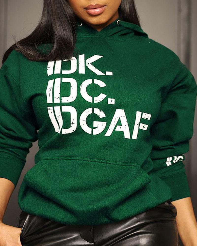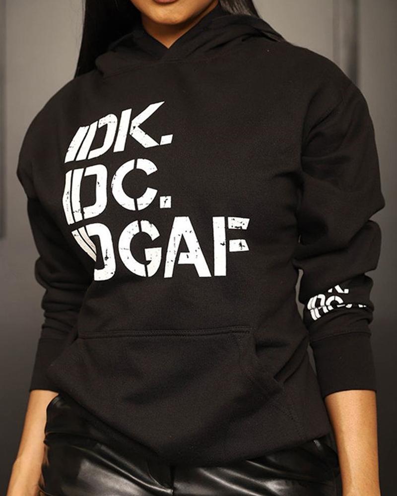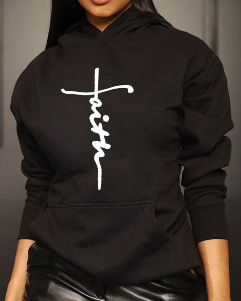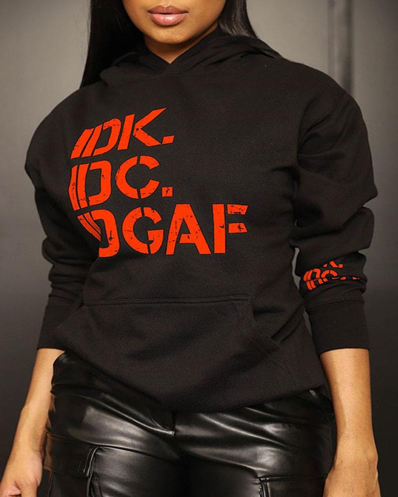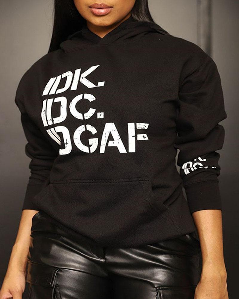 Plus Size Letter Print Long Sleeve Casual Hoodie |