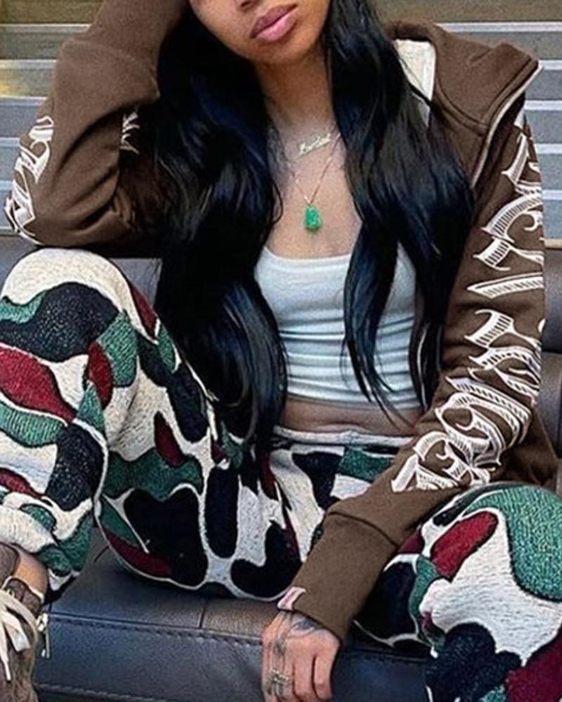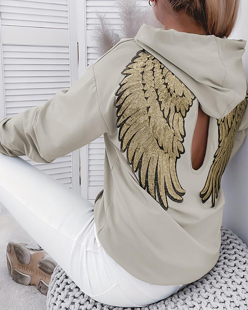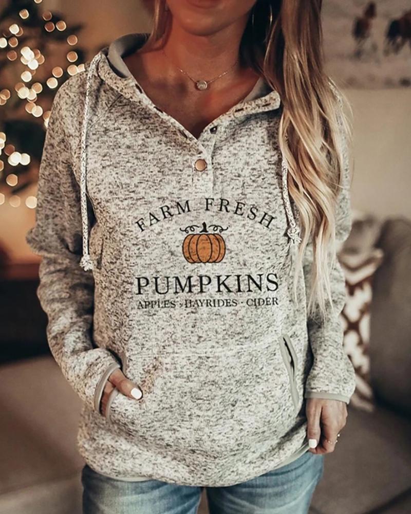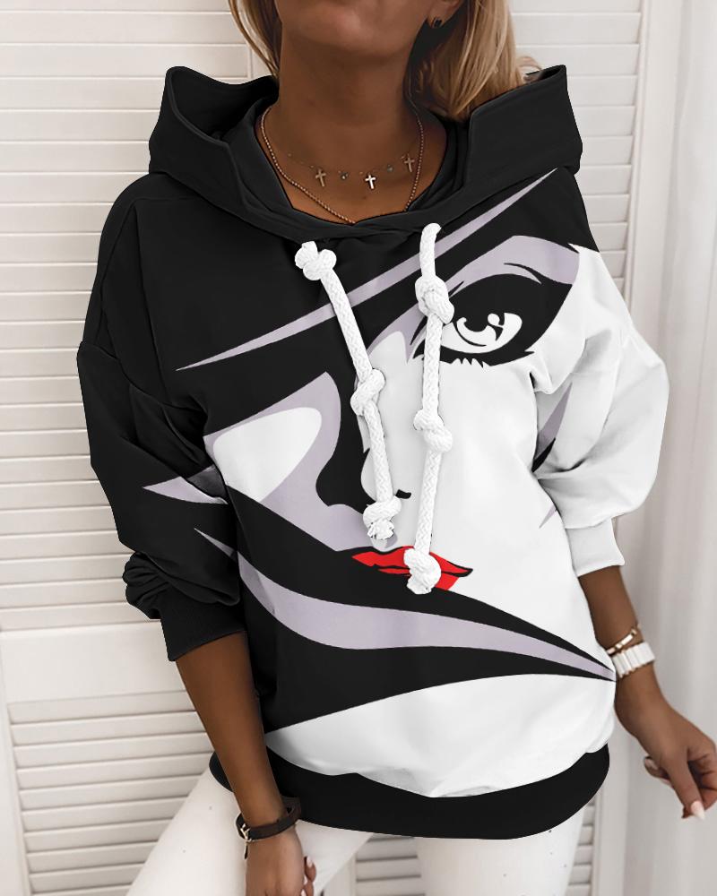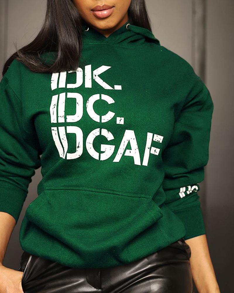 Plus Size Letter Print Long Sleeve Casual Hoodie |