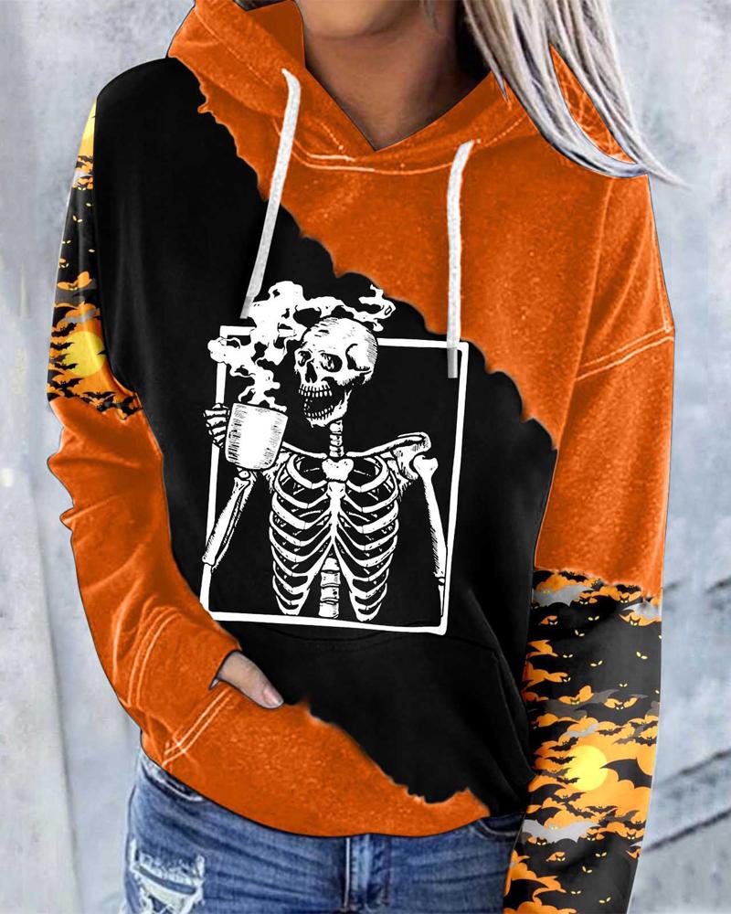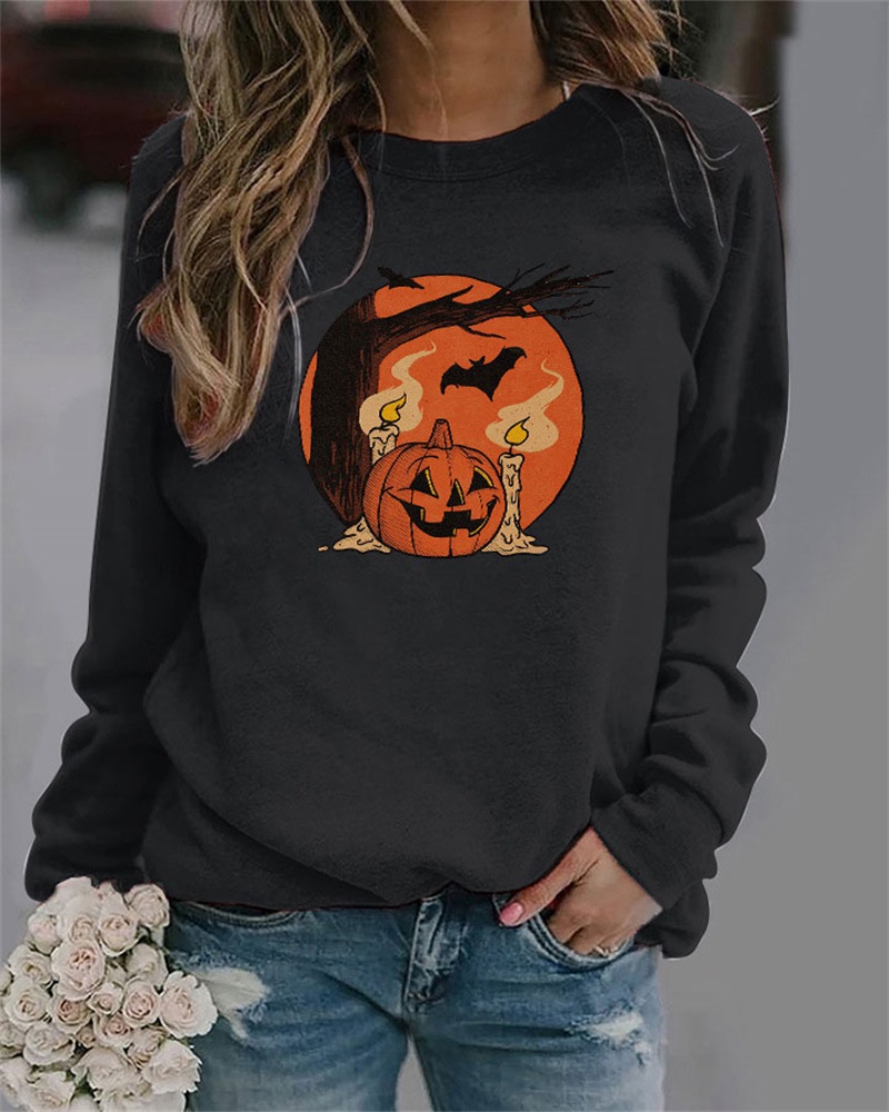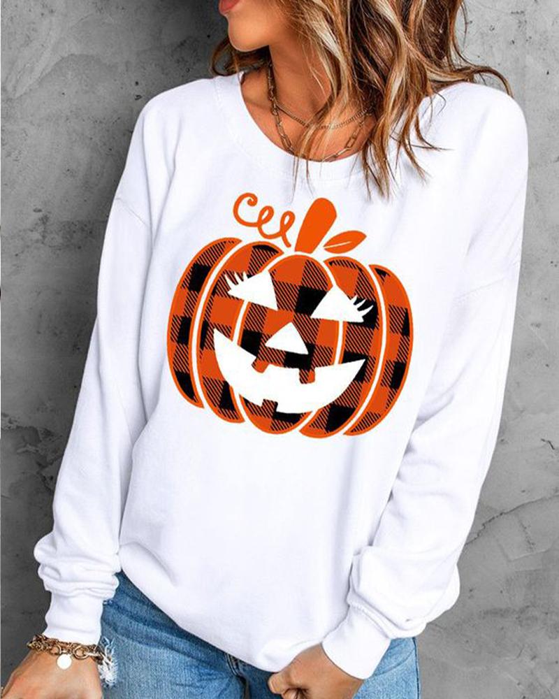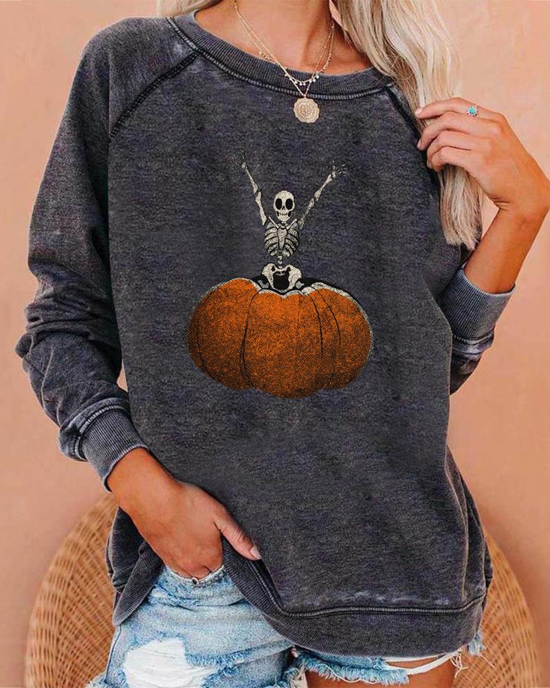 Plus Size Halloween Skeleton Pumpkin Print Sweatshirt |