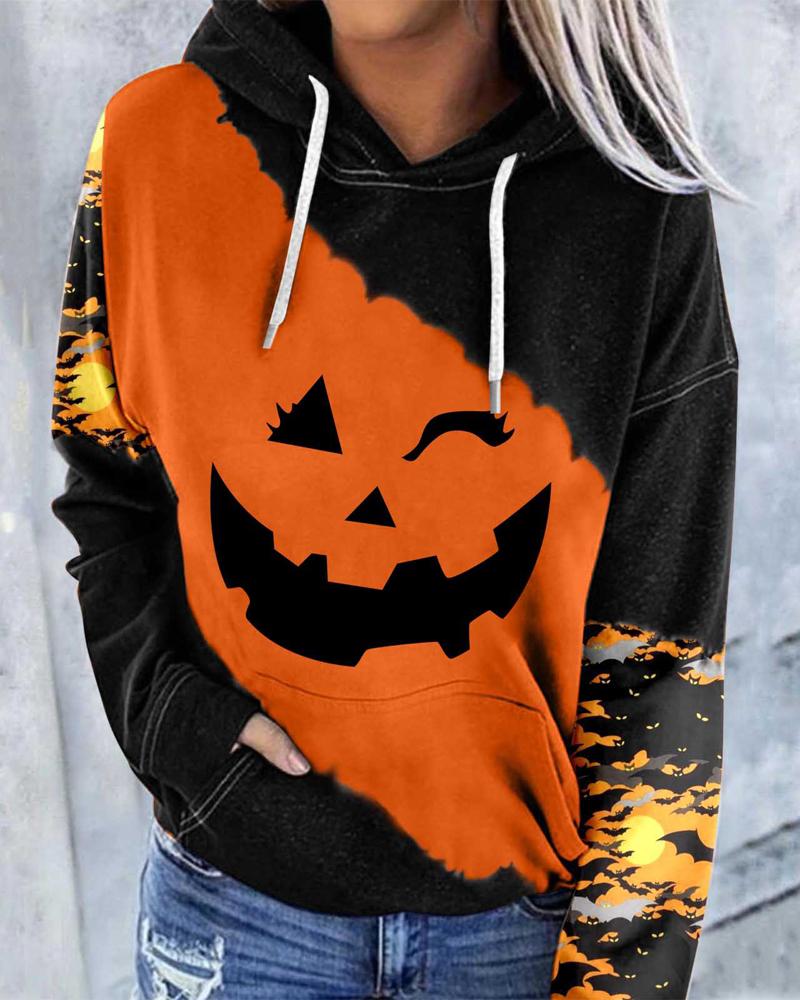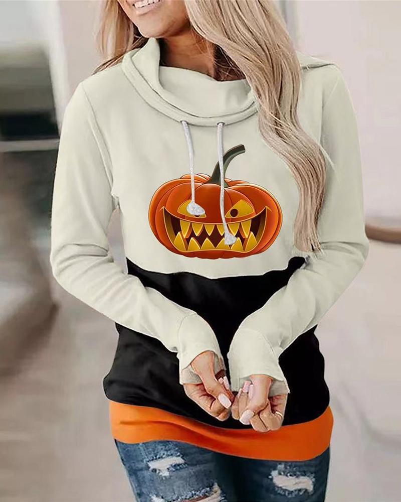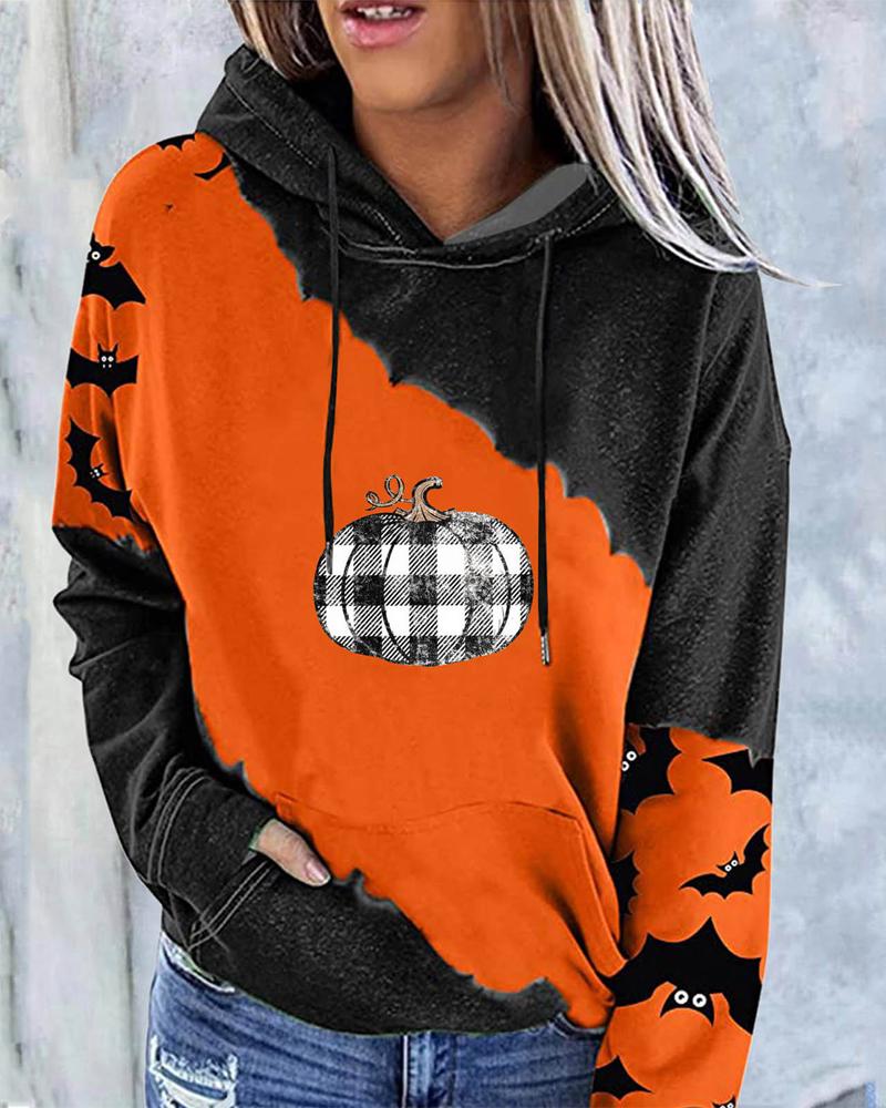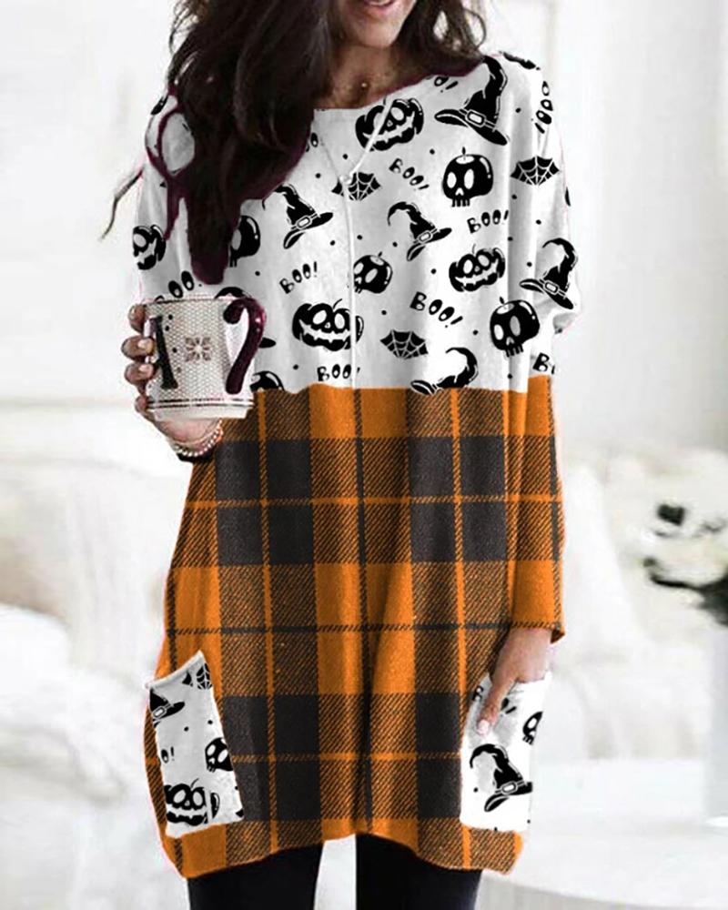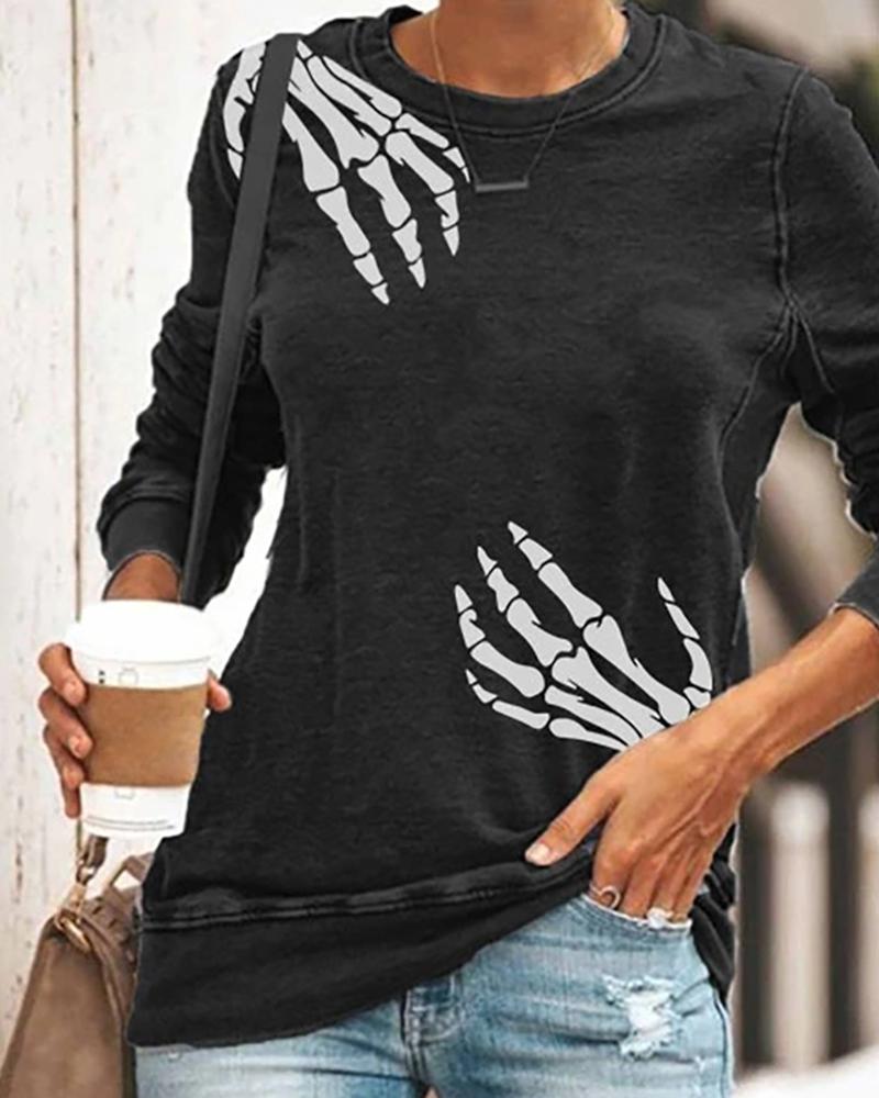 Plus Size Halloween Skeleton Pumpkin Print Sweatshirt |
