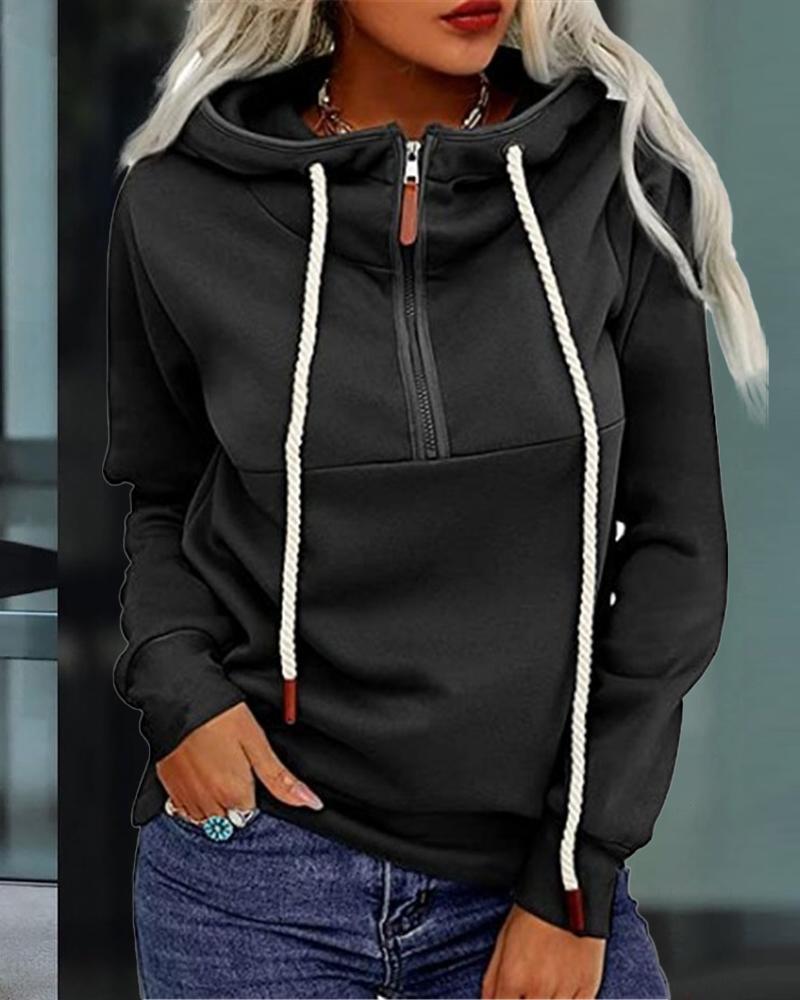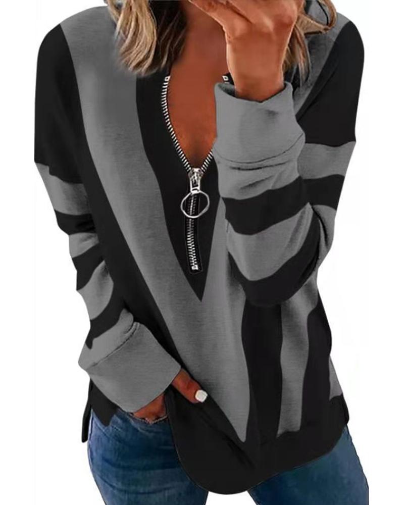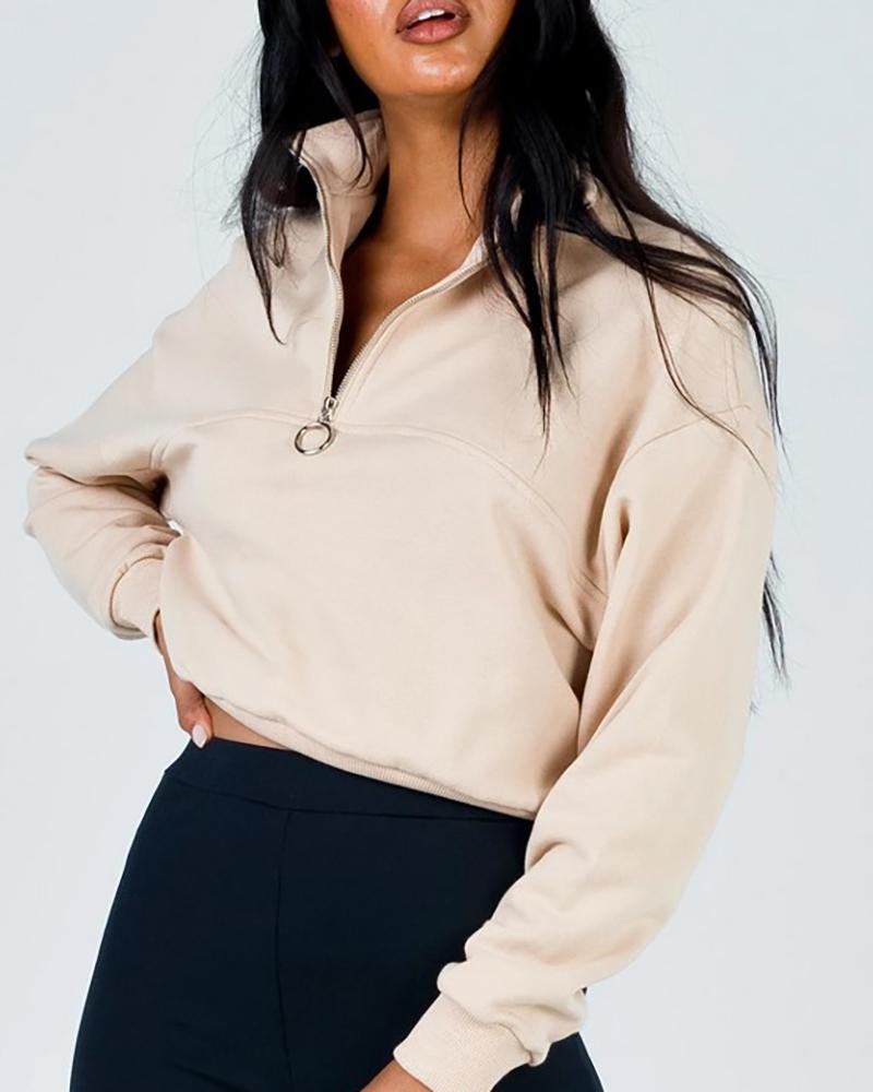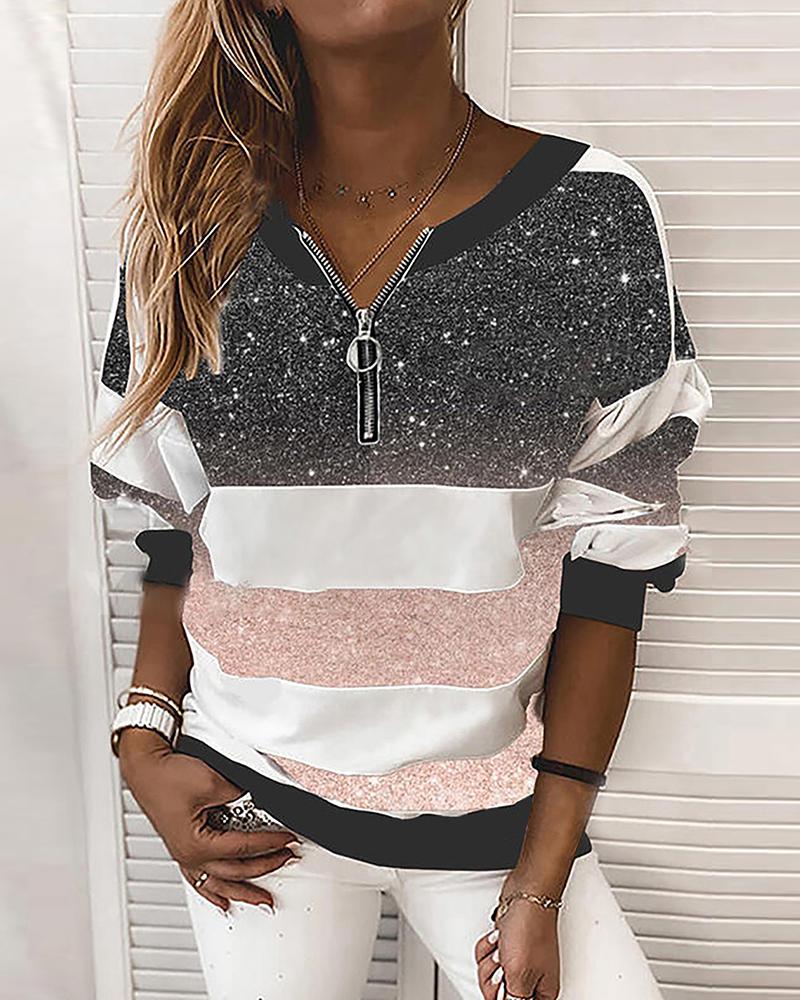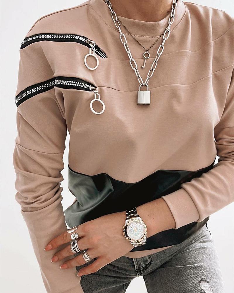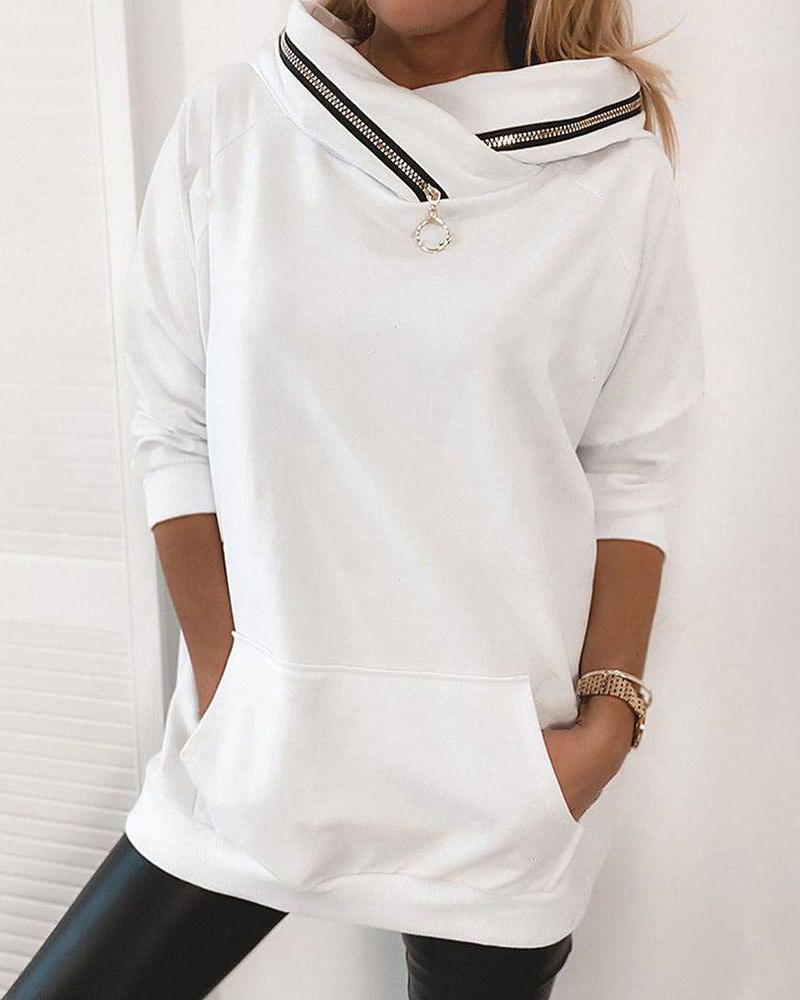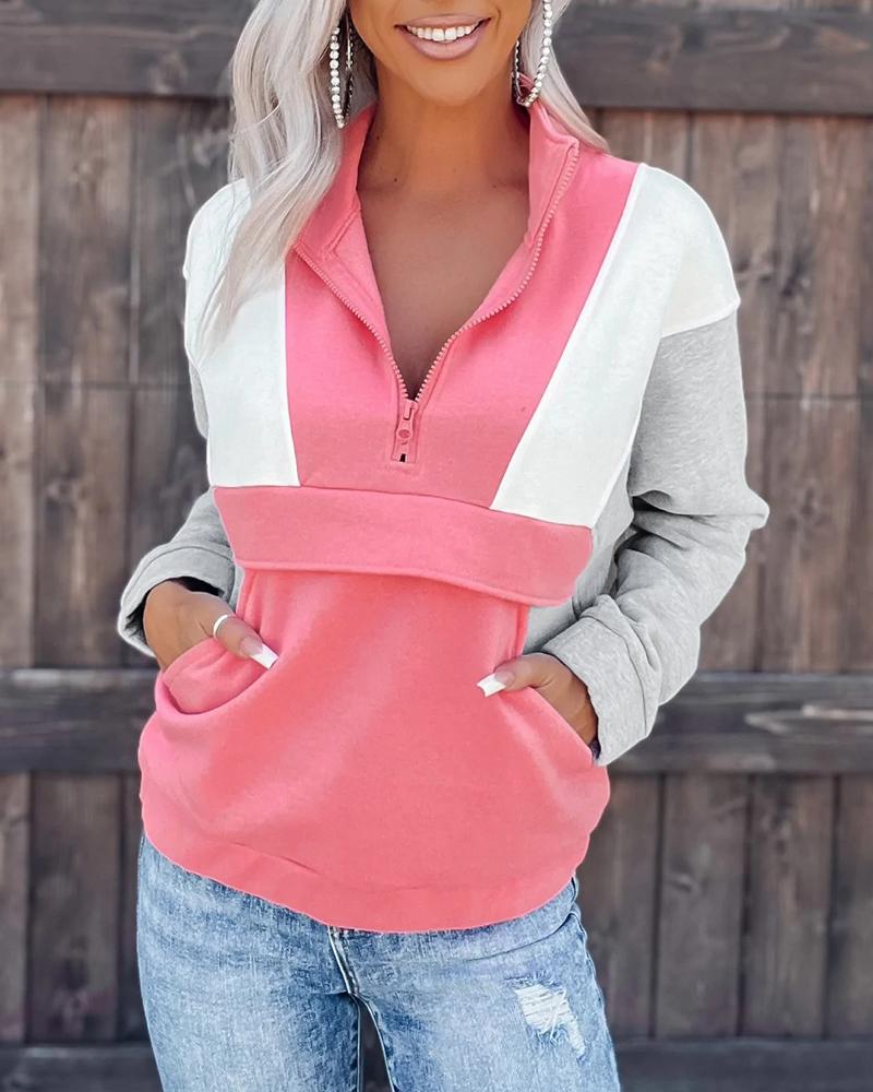 Colorblock Zipper Design Long Sleeve Sweatshirt |
