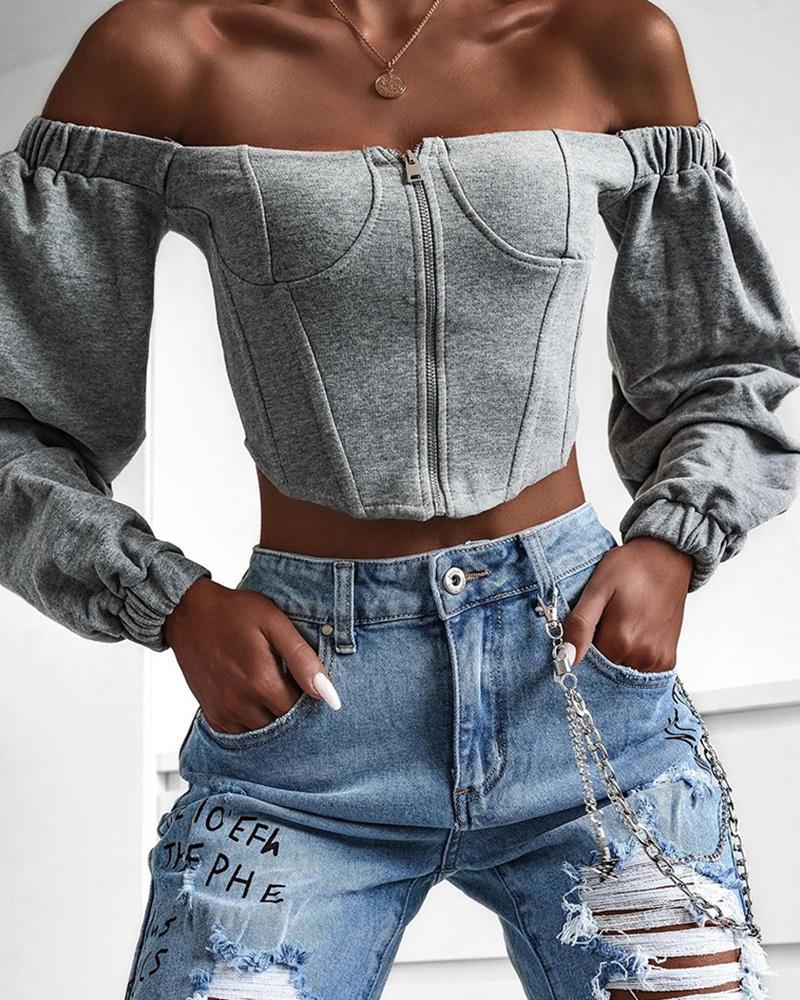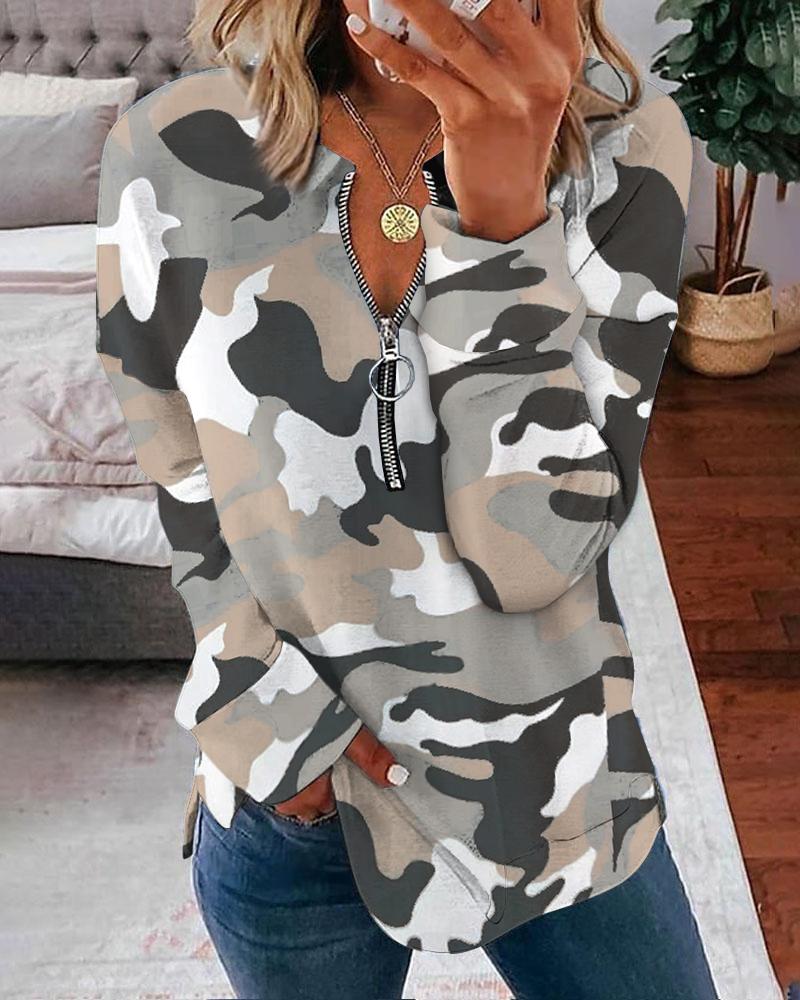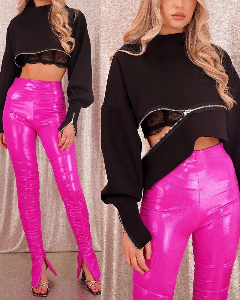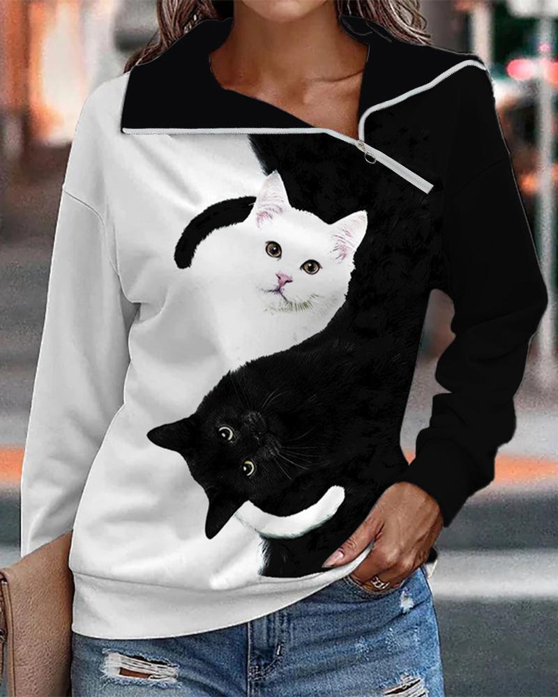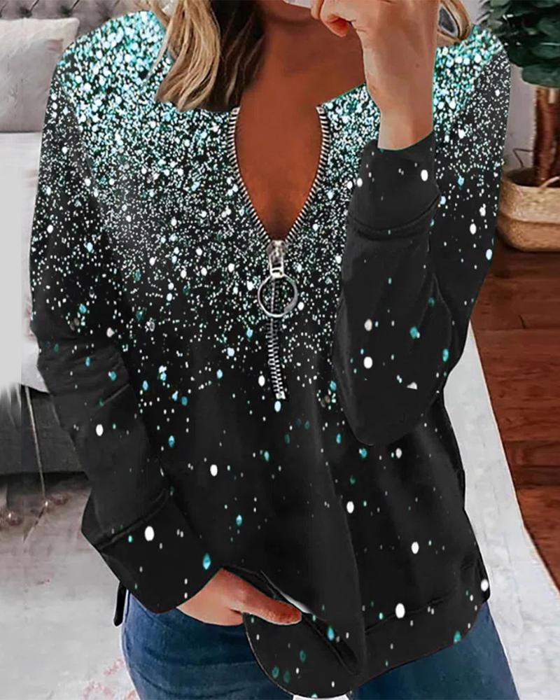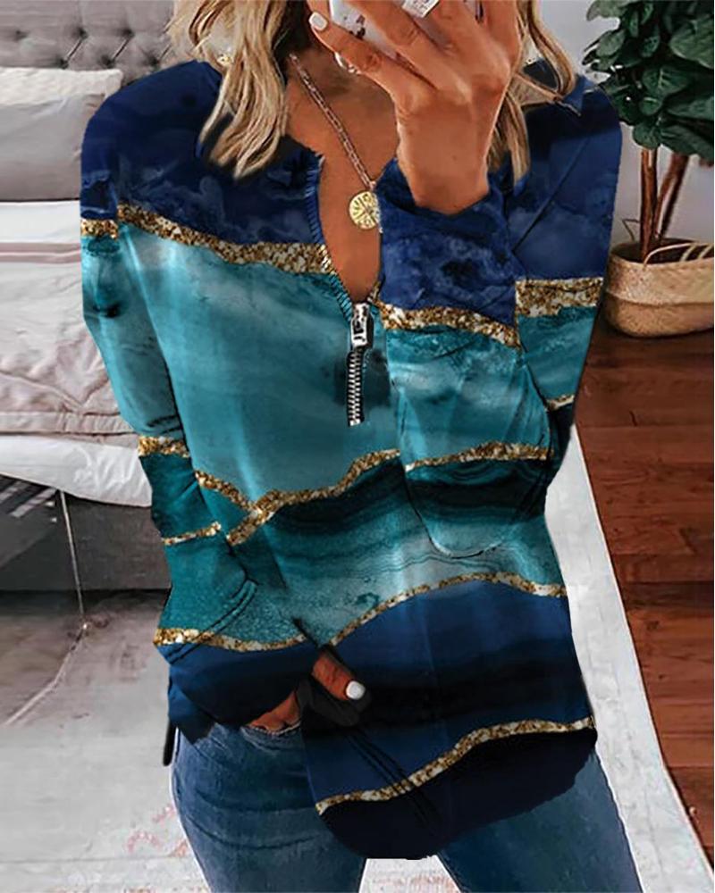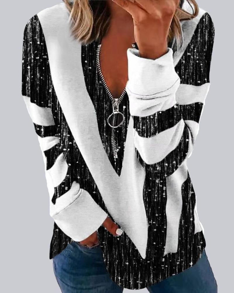 Colorblock Zipper Design Long Sleeve Sweatshirt |